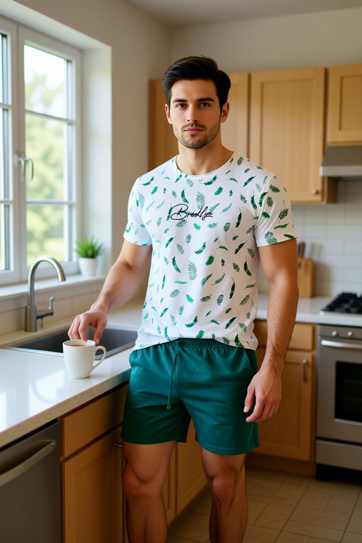 Erkek Yaprak Baskılı Pamuklu Pijama Takımı Fonksiyonel Dayanıklı Kaliteli Konforlu Estetik