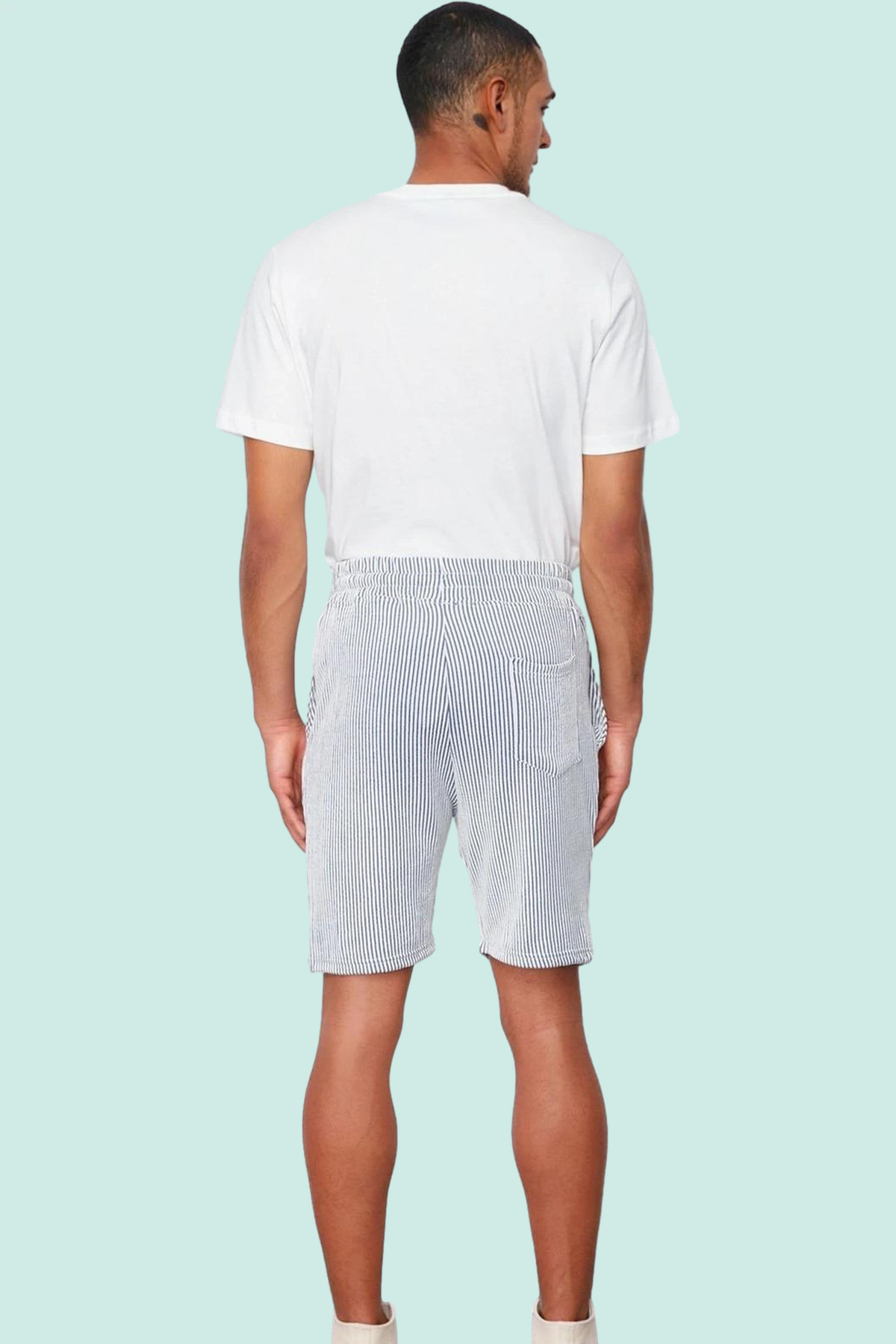 Bu yaz, rahatlığınızdan ödün vermeden şık görünmenin keyfini çıkarın! Erkek Lacivert Çizgili Boru Paça Şort, yaz aylarının sıcak günlerinde serin kalmanızı sağlarken tarzınızı da ön plana çıkaracak. Nefes alabilen, %60 pamuk, %37 polyester ve %3 elastan karışımından üretilen kumaşı, gün boyu süren konfor için mükemmeldir. Straight kalıbı ve Relaxed silueti ile her vücut tipine uyum sağlar. Boru paça tasarımı modern ve şık bir görünüm kazandırırken, ince çizgili deseni, kıyafetlerinize ayrı bir hava katar. Cepsiz tasarımı minimal ve şık bir görünüm sağlar. Kemersiz kullanımı ile pratik bir tarz sunar. Kısa boyu ile yaz aylarının sıcak günlerinde rahatlığı garanti eder. Bu şortu, tişörtler, pololar ve spor ayakkabılarla kombinleyerek günlük kullanımda rahatlıkla tercih edebilirsiniz. 30-42 beden aralıklarında mevcuttur.