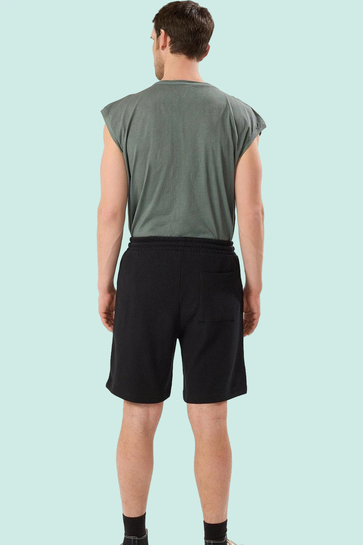 Rahatlığı ve şıklığı bir araya getiren bu erkek şortu ile sıcak yaz günlerinde stilinizden ödün vermeyin! %50 pamuk, %50 polyester karışımı, nefes alabilen kumaşıyla gün boyu konfor sağlar. Dokulu örme yapısı ve düz, rahat kalıbıyla her vücut tipine uyum sağlayan bu şort, kısa boyuyla hareket özgürlüğü sunar. Normal bel yüksekliği ve boru paça detayıyla modern ve şık bir görünüm elde edersiniz. Siyah rengi, gardrobunuzdaki diğer parçalarla kolayca kombinlenebilir.
