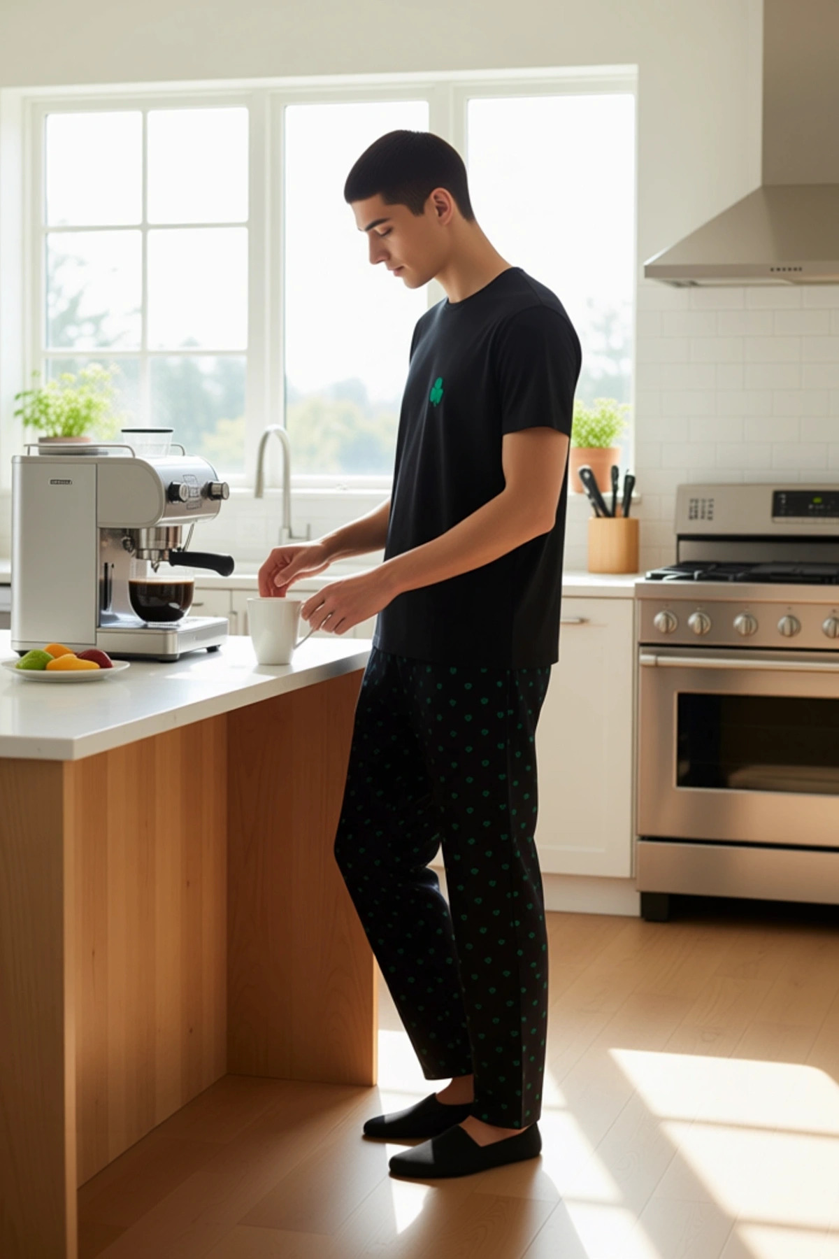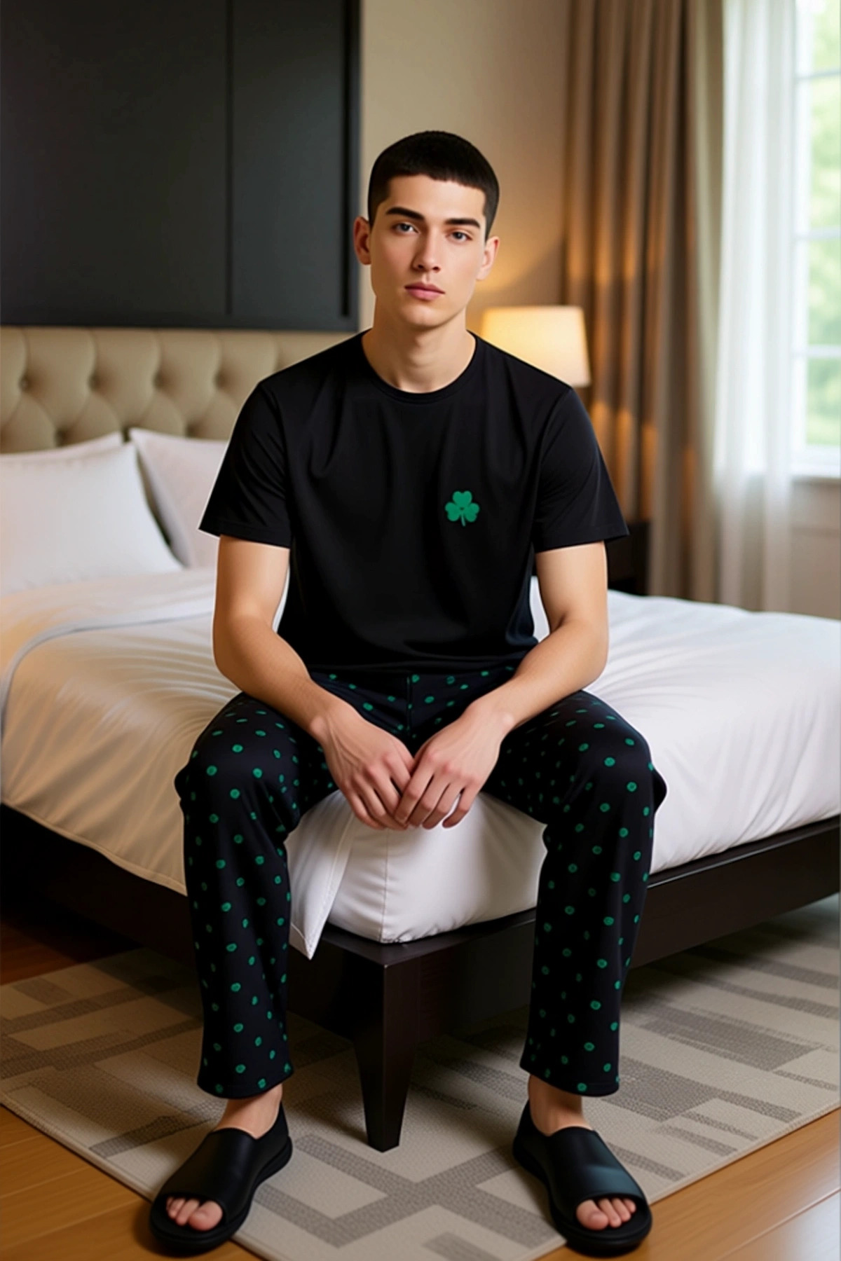 Erkek Yonca Desenli Ev Giyim Pijama Takımı Fonksiyonel Dayanıklı Kaliteli Konforlu Estetik