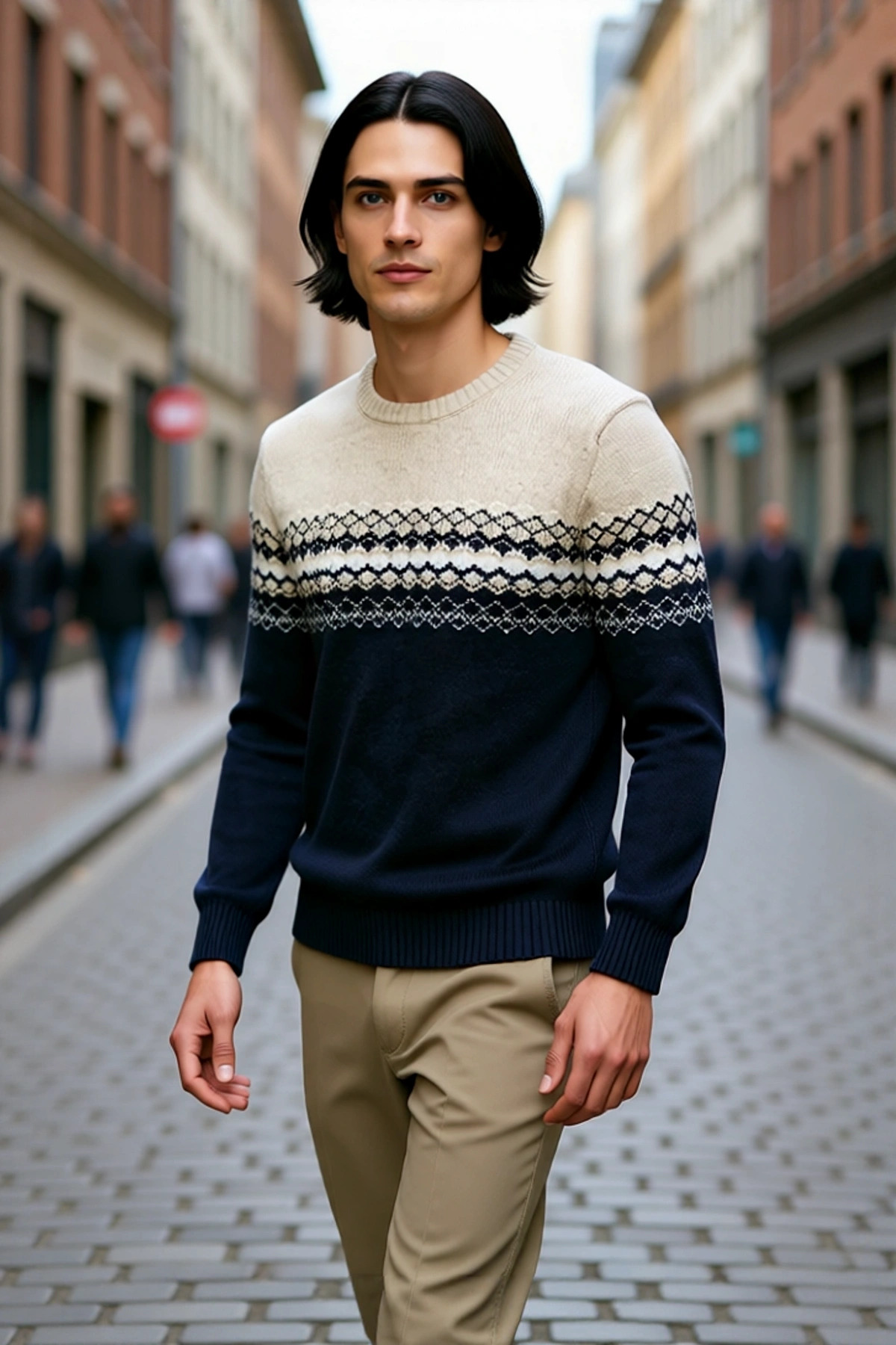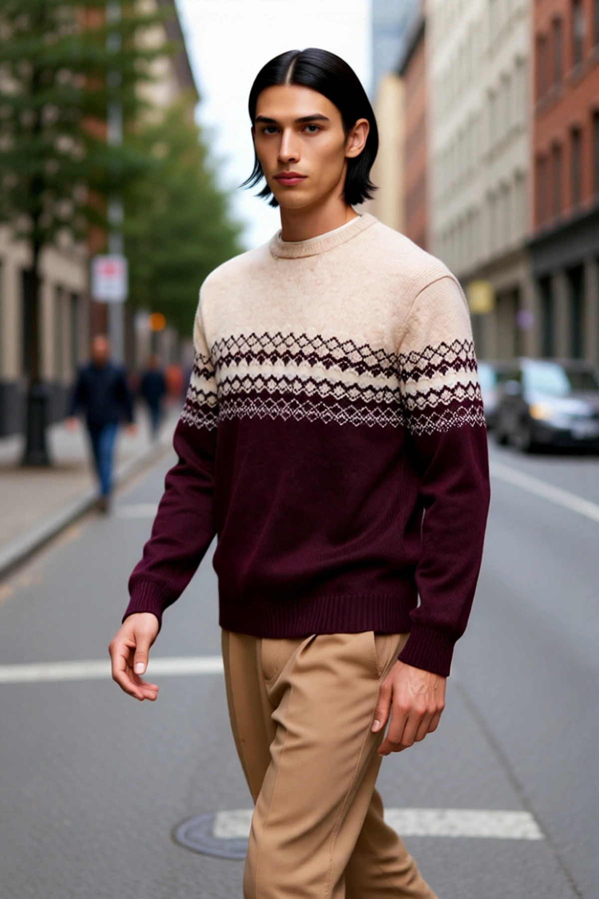 Bisiklet yaka tasarımı, zamansız bir şıklık sunarken, standart kol tipi gün boyu süren rahatlık ve hareket serbestliği sağlar. Orta kalınlıktaki triko kumaş dokusu, soğuklara karşı etkili bir koruma sağlarken, nefes alabilir özelliğiyle terlemeyi önler. Baskısız ve düz ürün tipi, etnik desenin tüm detaylarını ortaya çıkarır, cepsiz ve kemersiz yapısıyla akıcı bir siluet yaratır. Bu kazak, uzun ömürlü kullanımı garanti eden sağlam yapısı ve kolay bakım avantajıyla (makinede yıkanabilir) öne çıkar.