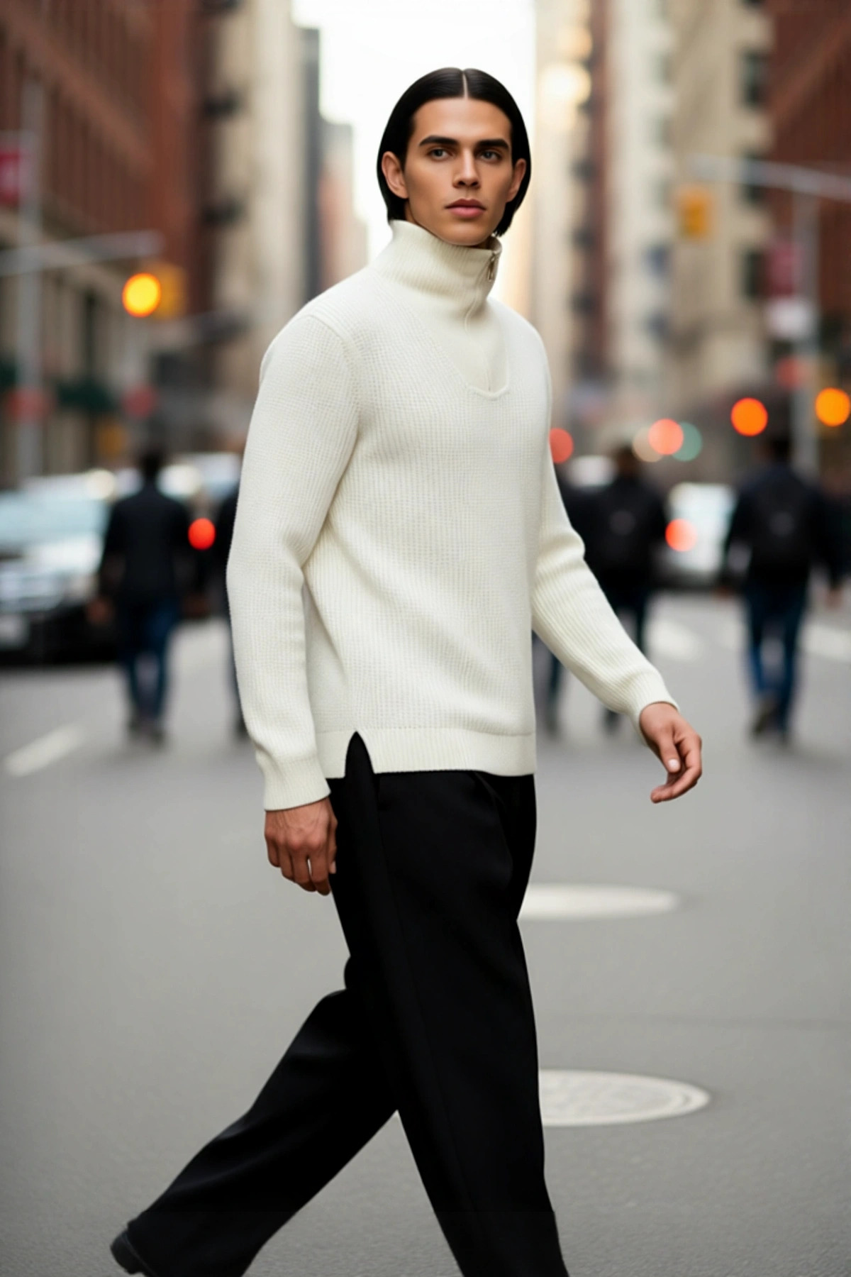 Öne çıkan fermuarlı dik yaka tasarımı, boynunuzu rüzgardan ve soğuktan korurken, modern ve spor bir hava katar. Standart uzun kol yapısı, hareket özgürlüğünü kısıtlamaz ve rahat bir kullanım sunar. Selanik dokuma tekniği ile üretilen triko kumaşı, kazağa estetik bir derinlik kazandırır ve dayanıklılığını artırır. Cepsiz ve basic silueti ile sade bir tarzı benimseyenler için mükemmeldir. Type 0 yıkama talimatı sayesinde bakımı pratik ve zahmetsizdir.