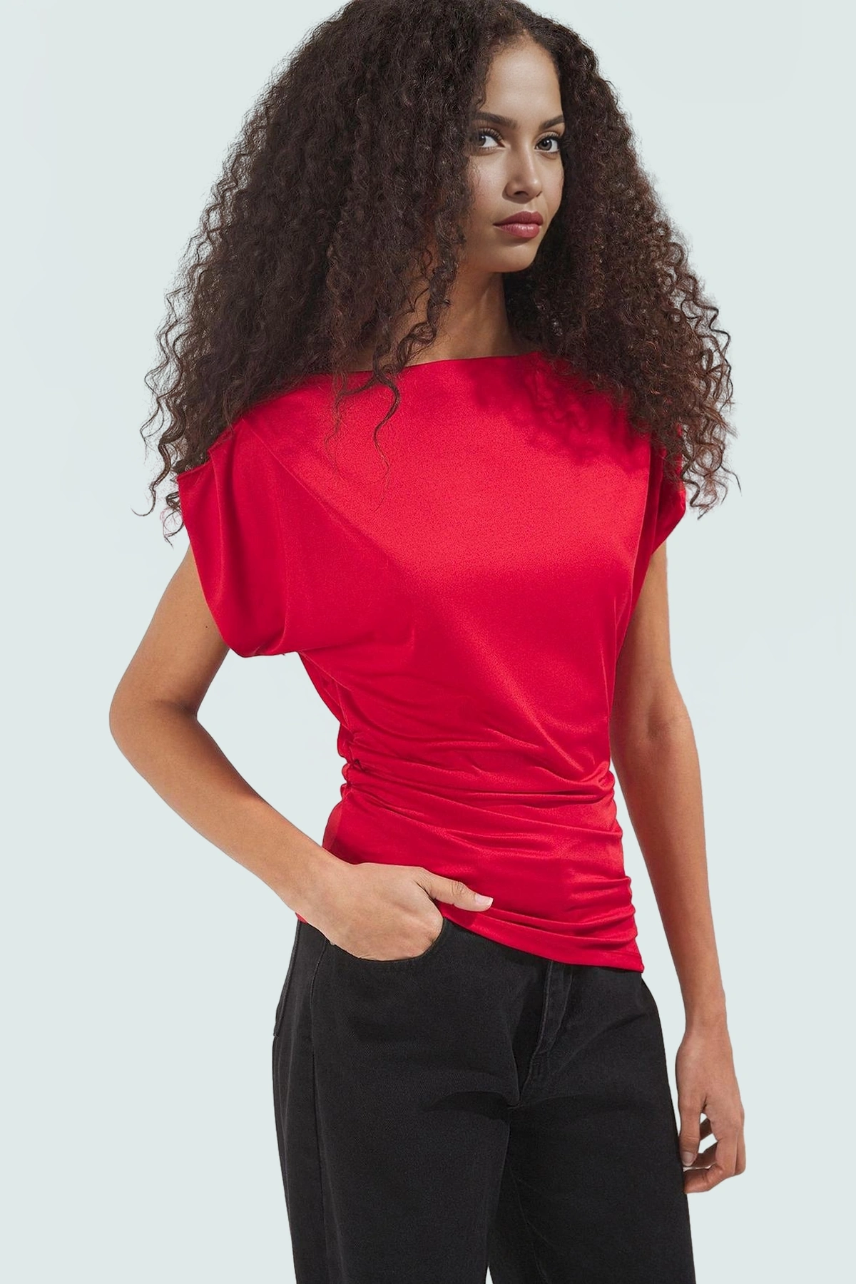 Esnek Örme Bluz; Kayık Yaka Kısa Kollu Fitted Kalıp Modern Stil Premium Kalite Özel Tasarım