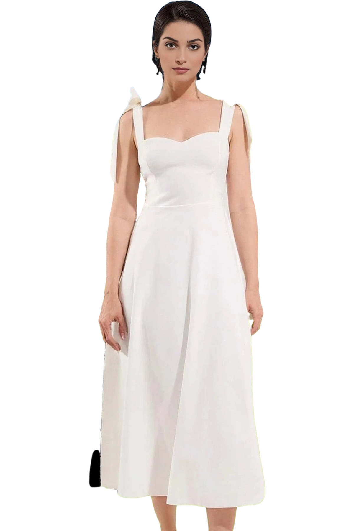 Elbisenin kalp yaka detayı ve bağcıklı askıları, romantik ve şık bir görünüm yaratırken, skater kalıbı her vücut tipine mükemmel uyum sağlar. Astarlı yapısı sayesinde, teninize temas etmez ve gün boyu rahatlık sağlar. Eteğinin belden açılan tasarımı ise hareket özgürlüğünüzü kısıtlamaz ve size özgüven kazandırır.