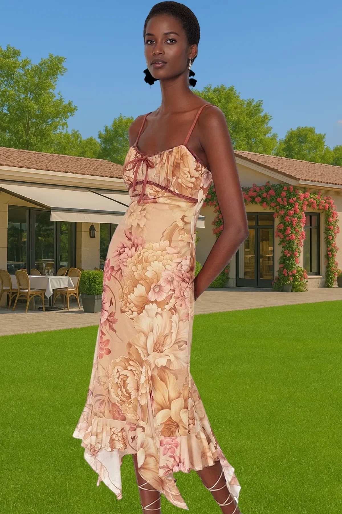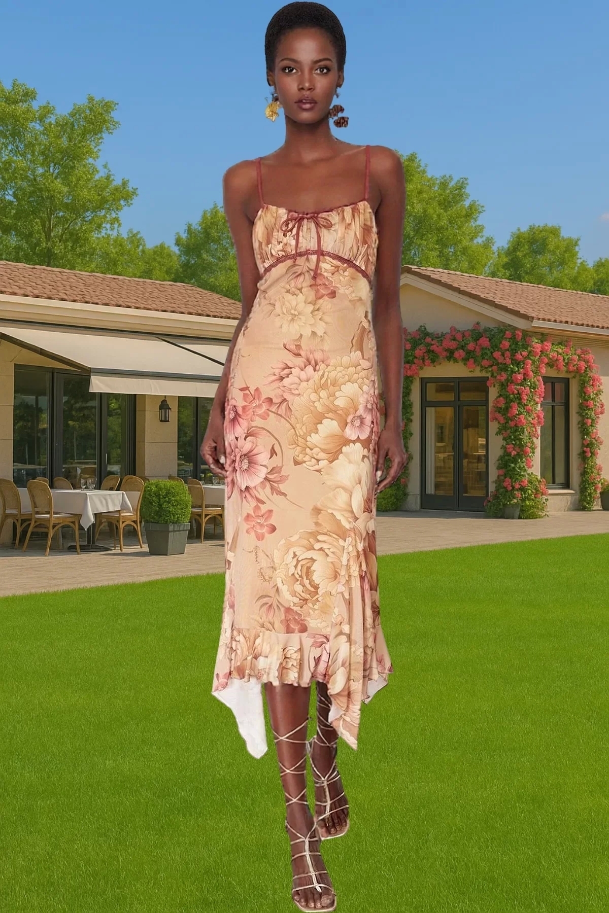 Feminen A Kesim Örme Tül Elbise Çiçek Desenli Yazlık Mükemmel Uyum Mükemmel Uyum Mükemmel Uyum