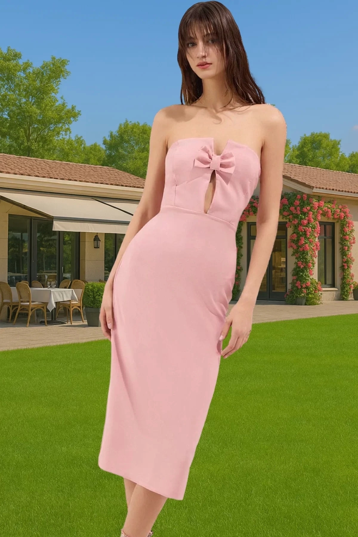 Bu büyüleyici elbise, özel günlerinizde kendinizi prenses gibi hissetmenizi sağlayacak şekilde tasarlandı. Straplez modeli ve önündeki zarif fiyonk detayı, feminenliğinizi vurgularken, vücuda oturan kesimi ile kusursuz bir siluet oluşturmanıza yardımcı olur. Yüksek kaliteli dokuma kumaşı, hem şıklığı hem de konforu bir arada sunarak, tüm gece boyunca kendinizi rahat hissetmenizi sağlar. Mezuniyet baloları, düğünler veya romantik akşam yemekleri için mükemmel bir seçim.