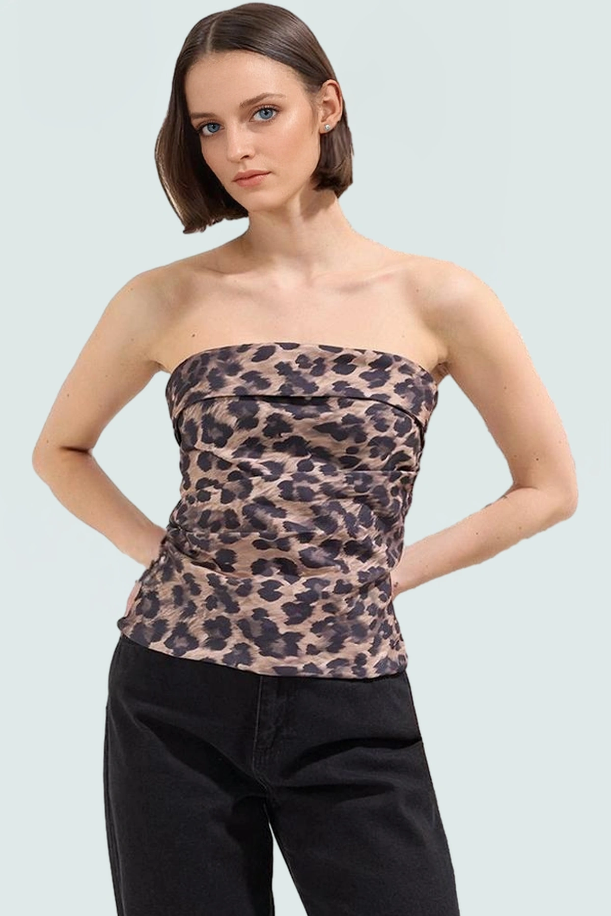 Bu muhteşem haki bluz, yaz aylarında hem şık hem de rahat olmak isteyen kadınlar için özel olarak tasarlandı. Fitted kalıbıyla vücudunuzu kusursuz bir şekilde sarar ve zarif bir siluet oluşturur. Straplez tasarımıyla sıcak günlerde serin kalmanızı sağlar. Nefes alan dokuma kumaştan üretilen bluz, gün boyu konfor sunarken, yüksek kaliteli materyaliyle de uzun ömürlü kullanım sağlar. Polyester ve elastan karışımı sayesinde, kolay kırışma yapmaz ve rahatça hareket etmenizi sağlar.
