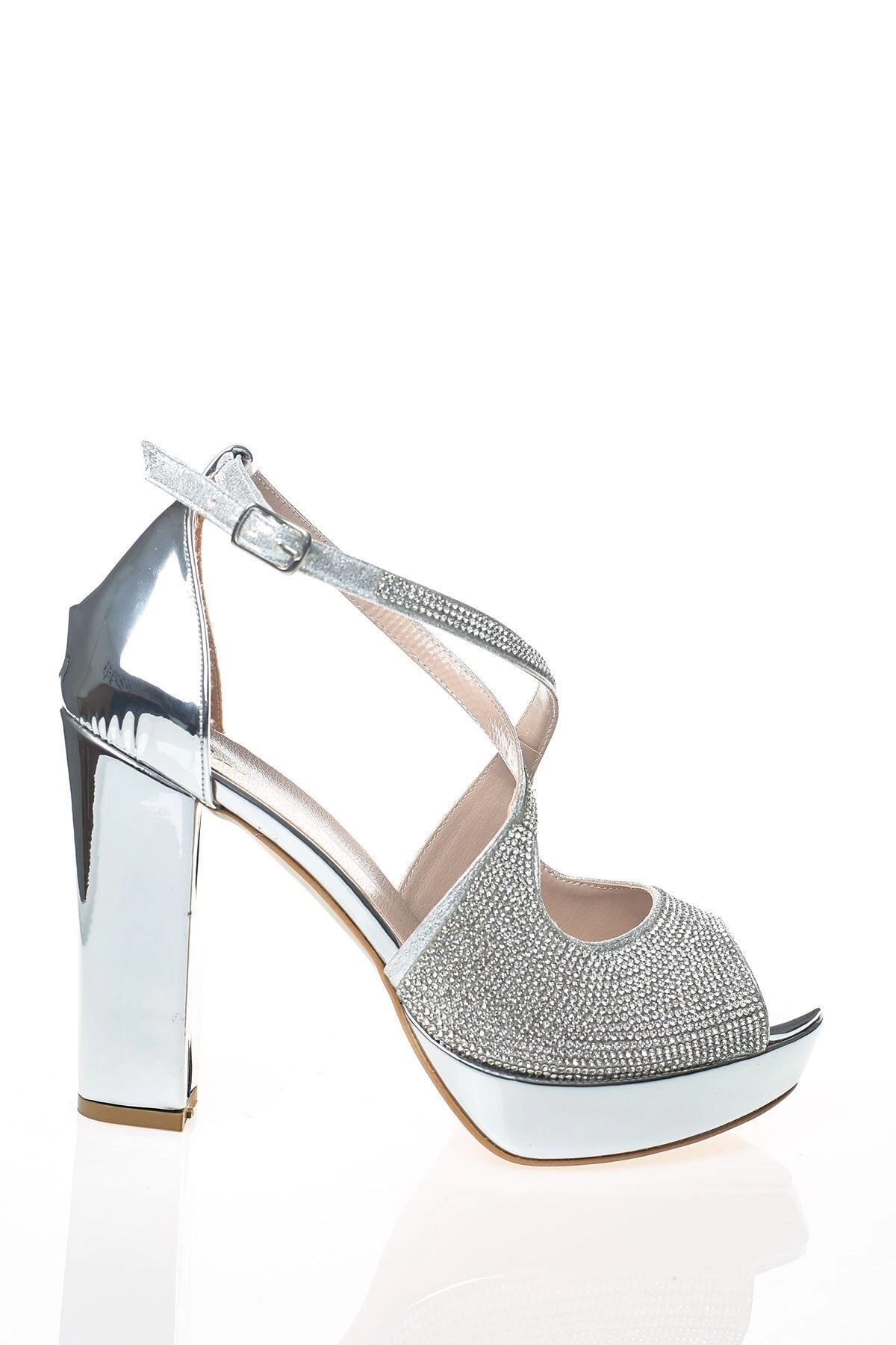 Gümüş Ayna Yüz Taş Kadın Abiye Ayakkabı Kadın Topuklu Şık Gece Ayakkabısı Zarif Tasarım