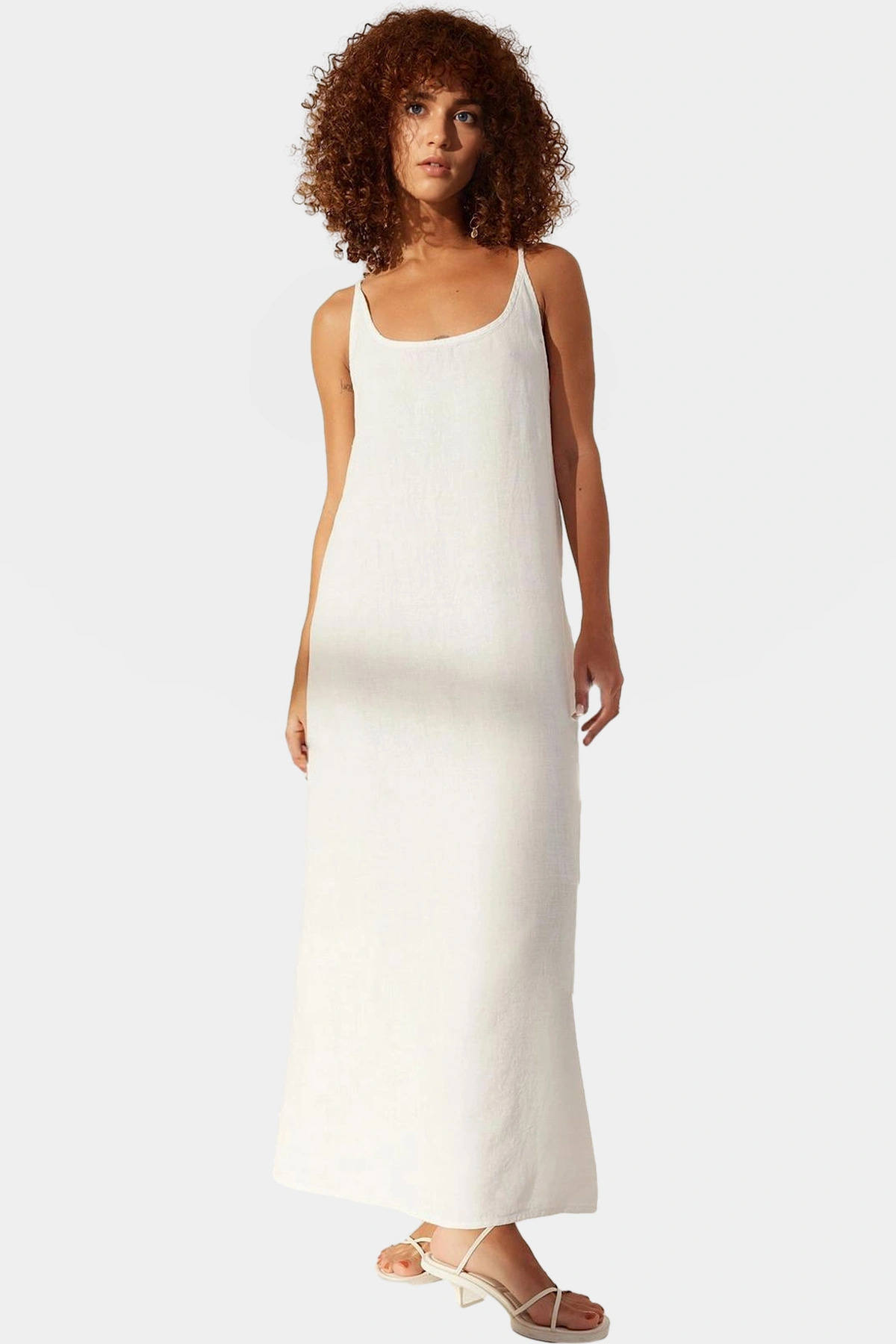 Yaz aylarının vazgeçilmezi olacak bu şık ve rahat maxi elbise, %100 keten kumaştan üretilmiştir. Nefes alan yapısıyla sıcak havalarda dahi serin kalmanızı sağlar. V yaka detayı ve sırttaki özel tasarım, elbiseye feminen ve modern bir hava katmaktadır. Şıklığı ve rahatlığı bir araya getiren bu elbise, günlük yaşamınızda ve özel günlerinizde özgüvenle kullanabileceğiniz bir parçadır. %100 keten kumaş, doğal yapısıyla gün boyu konfor sunar. Nefes alabilir ve hafif özelliği sayesinde sıcak havalarda serin kalmanıza yardımcı olur. Sırt detayı, elbiseye şık bir görünüm kazandırırken, V yaka detayı da feminen bir dokunuş katmaktadır. Astarsız tasarımı sayesinde yaz aylarında ekstra rahatlık sağlar. Dokuma kumaş yapısı ise, elbisenin formunu koruyarak şık bir görünüm sunmasını sağlar. Maxi boyu ile her vücut tipine uyum sağlayan elbise, farklı aksesuarlarla kombinleyerek tarzınızı yansıtabilirsiniz. Günlük kullanım için sandaletler veya espadrillerle, daha şık bir görünüm için ise topuklu ayakkabılarla kombinleyebilirsiniz. Elbisenin bakımı kolay olup, makinede yıkanabilir. Modelin ölçüleri ve beden bilgileri, ürünün tam olarak nasıl durduğuna dair daha net bir fikir vermektedir. – Kumaş Tipi: Dokuma – Materyal: Keten – Kalıp: Shift – Persona: Fashion Forward – Kol Tipi: Standart Kol – Desen: Düz – Yaka Tipi: V Yaka – Kol Boyu: Kolsuz – Astar Durumu: Astarsız – Boy: Maxi – Siluet: Basic – Ortam: Casual/Günlük – Dokuma Tipi: Rigid – Kemer/Kuşak Durumu: Kemersiz – Sürdürülebilirlik Detayı: Hayır – Materyal Bileşeni: 100% Keten – Sezon: Yaz – Menşei: TR – Modelin Ölçüleri: Boy: 175cm(59) Göğüs: 83cm(32in) Bel: 56cm(22in) Kalça: 87cm(34in) – Mankenin üzerindeki ürün S36 bedendir. – Model Ön Boyu: 129,0 cm