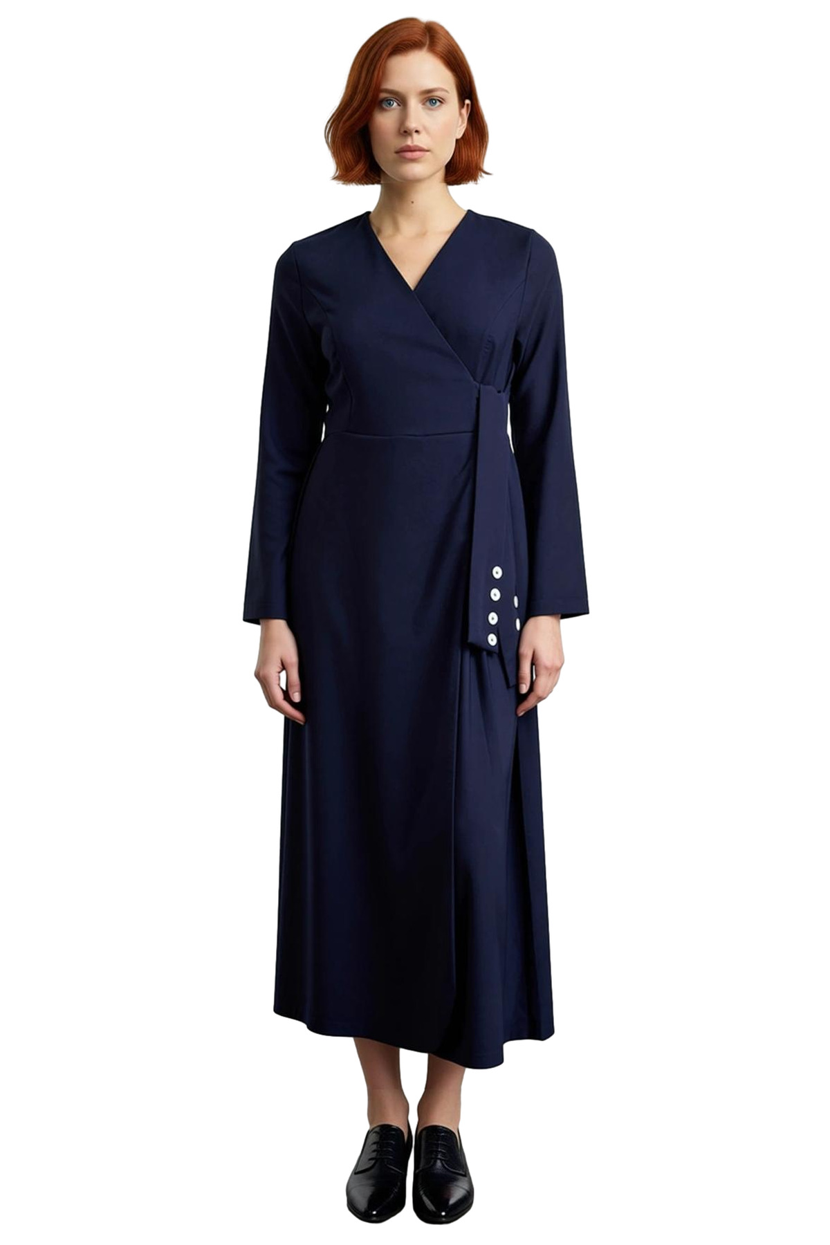 Kadınlar için tasarlanan bu lacivert anvelop elbise, A-line kalıbıyla vücuda kusursuz bir şekilde oturarak modern ve akıcı bir duruş sergiler. Yüksek kaliteli %88 polyester ve %12 elastan karışımı dokuma materyali, esnekliği ve dayanıklılığı bir araya getirerek gün boyu rahatlık sunar. Düz deseni ve asil lacivert rengi, minimalist şıklığı sevenlerin tercihi olurken, anvelop silueti feminen hatları ön plana çıkarır. Ceket yaka detayı, elbiseye sofistike bir hava katarken, Ramadan koleksiyonunun ruhunu yansıtan zarif bir parçadır. Bu elbise, Cool & Comfort personasına uygun olarak hem şık hem de konforlu bir deneyim sunar.