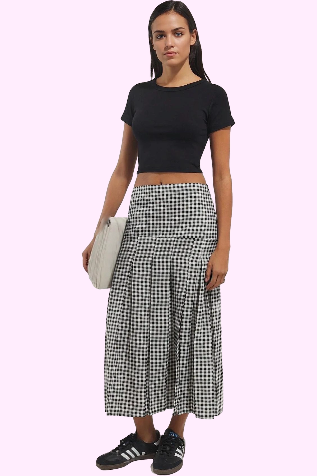 %75 pamuk, %22 elastan ve %3 liyosel karışımıyla üretilen bu yüksek kaliteli dokuma kumaş, nefes alabilir, yumuşak ve dayanıklıdır. Elastan sayesinde vücut hatlarınıza kusursuz uyum sağlar. A-line kesimiyle her bedene mükemmel oturur. Piliseli detay, eteğe hareketlilik ve dinamizm katar, siyah beyaz ekose deseni ise zamansız bir şıklık sunar. Bu detay, eteğinize modern bir görünüm kazandırırken, yüksek kaliteli dokuma kumaş, gün boyu konfor sağlar.