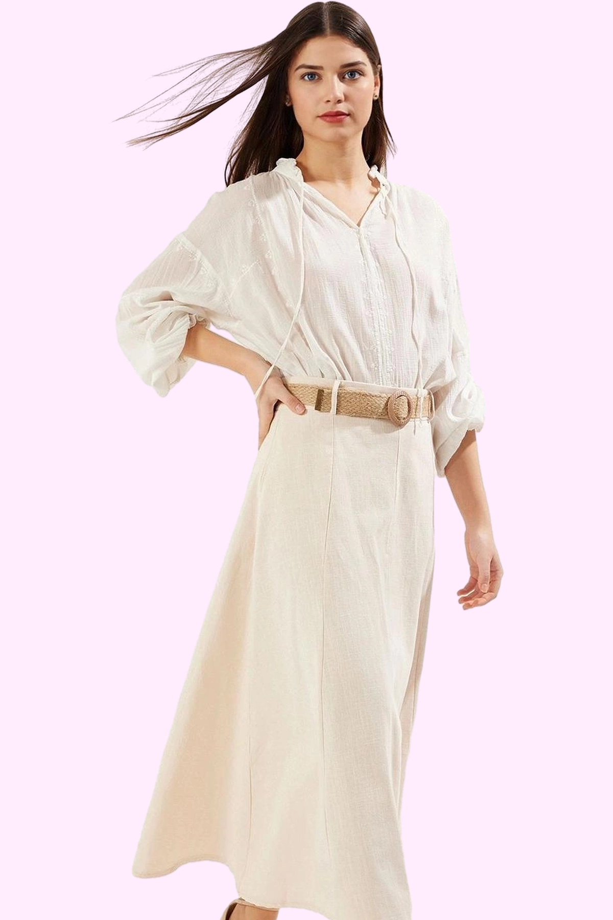 Materyal Bileşeni: 100% Pamuk; Boy: Maxi; Renk: Bej; Desen: Düz; Kumaş Tipi: Dokuma; Koleksiyon: Casual / Günlük; Siluet: A-line; Dokuma Tipi: Keten karışımlı; Sezon: Yaz Bu ürün, yüksek kalite standartlarına uygun olarak üretilmiştir. Günlük kullanımda konfor ve şıklığı bir arada sunar. Uzun ömürlü malzemesi sayesinde yıllarca kullanabilirsiniz. Modern tasarımı ile her ortamda dikkat çeker. Özenle seçilmiş kumaşı ve işçiliği ile fark yaratır. Rahat kesimi ve ergonomik tasarımı ile gün boyu konforu garanti eder.