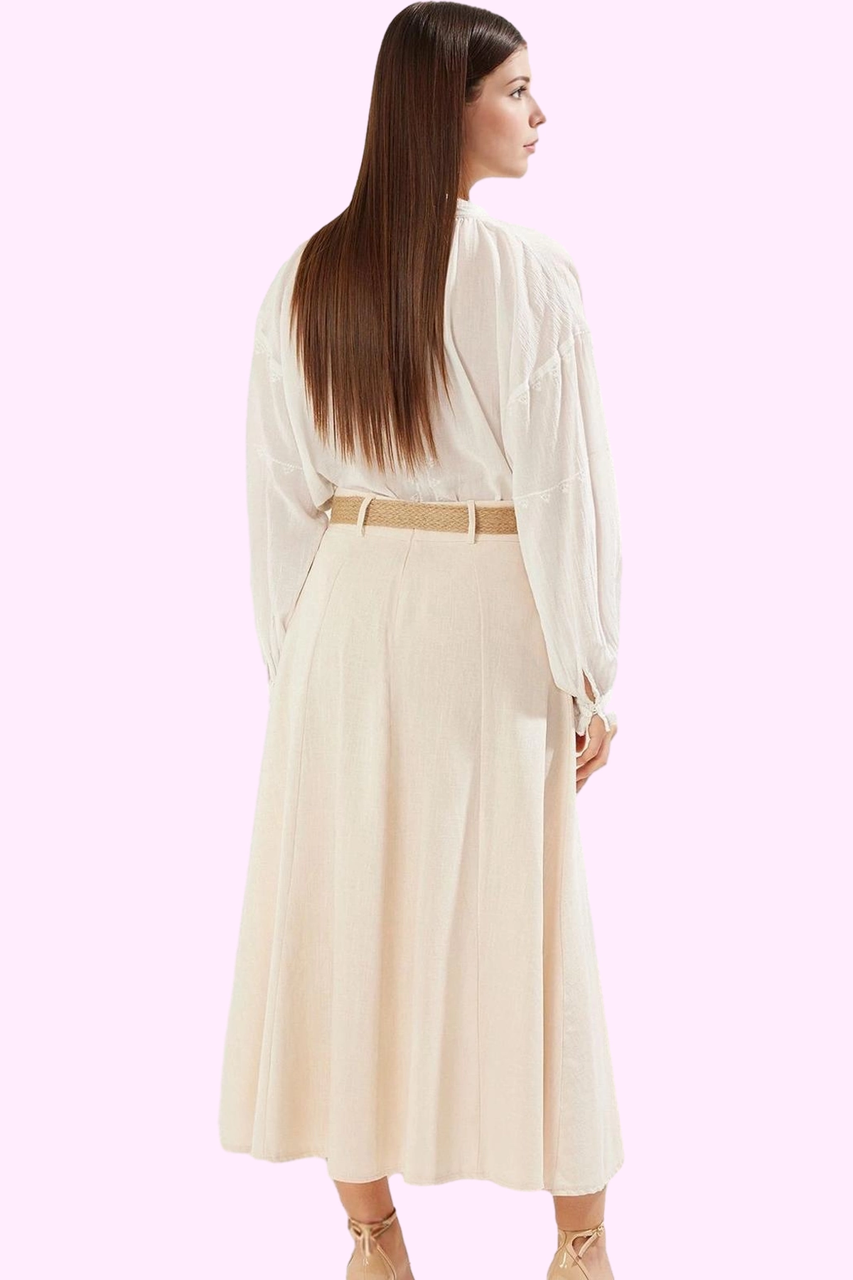 Rahatlığı ve şıklığı bir arada arayan kadınlar için mükemmel bir seçim olan bej A-line maxi eteğimizle tanışın! %100 pamuk keten karışımlı dokuma kumaşı, nefes alabilir yapısıyla yaz aylarında sizi serin tutarken, yumuşak dokusuyla da gün boyu konfor sunar. A-line kesimiyle vücut hatlarınızı zarifçe vurgulayan eteğimiz, beldeki kemer detayıyla da şıklığınıza şıklık katar.
