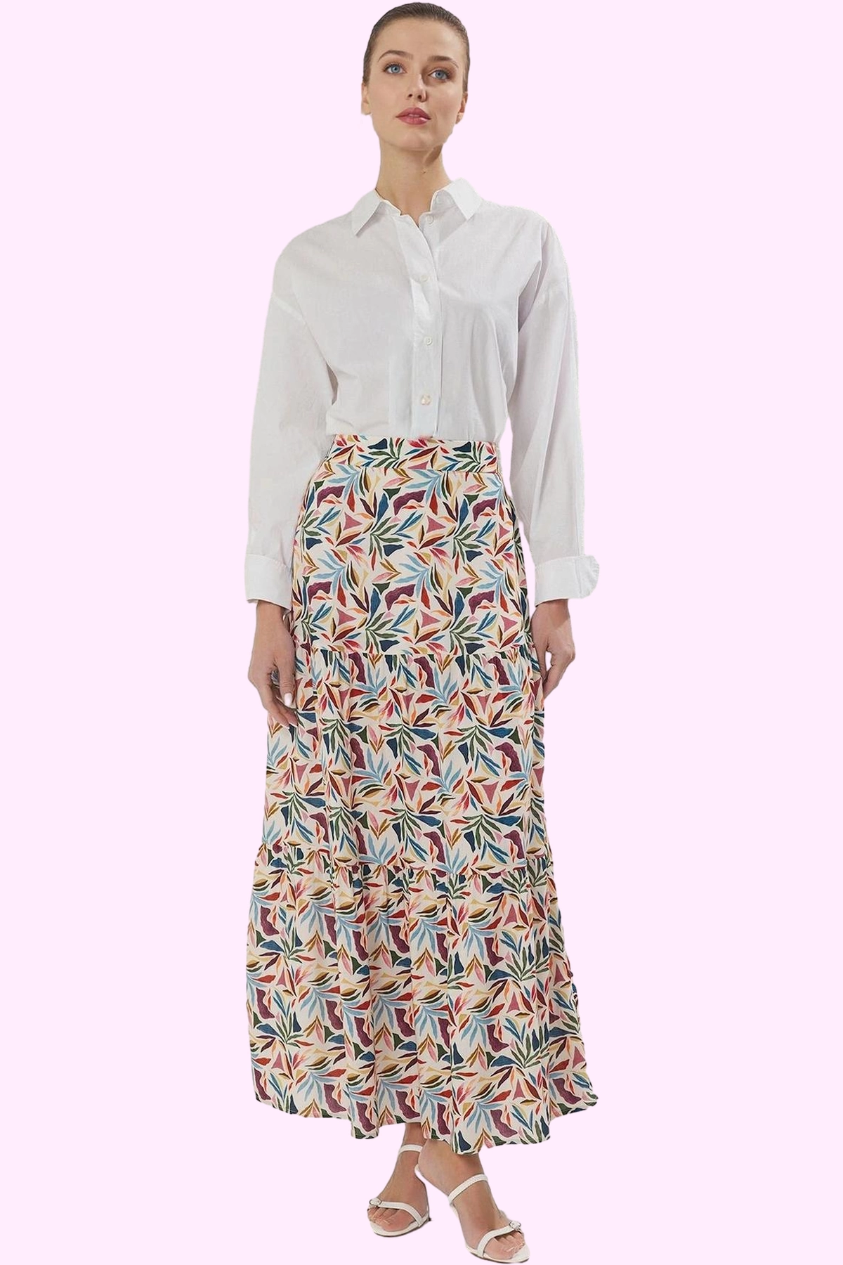 Eteğimizin yüksek kaliteli Shally dokuma kumaşı, hem dayanıklı hem de nefes alabilir özelliğiyle öne çıkıyor. A-line silüeti ve maxi boy uzunluğu ile şıklığı ve rahatlığı bir araya getirirken, çok renkli etnik desenleri, size benzersiz bir tarz kazandırıyor. Astarsız yapısıyla sıcak günlerde serin kalmanıza yardımcı olurken, her türlü ortamda kendinizi rahat hissetmenizi sağlıyor.
