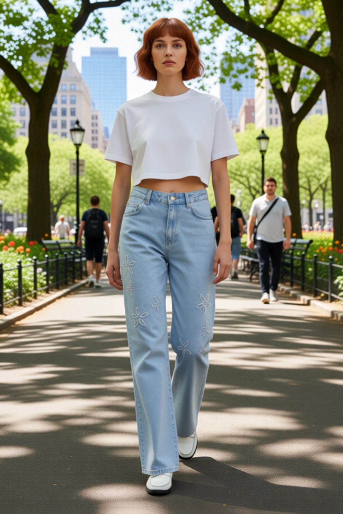 Bu kadın denim pantolon, geniş paça kesimi ve zarif çiçek nakışlarıyla stilinize sofistike bir dokunuş katacak. %100 pamuk materyali, cildinize dost bir his verirken, nefes alabilen yapısıyla gün boyu konfor sunar. Açık mavi rengi, her türlü üst giyimle kolayca uyum sağlar. Pantolonun wide leg silueti, modern bir görünüm sunarken, yüksek bel detayı da vücut hatlarını belirginleştirir. Çiçek desenleri, pantolona feminen ve sanatsal bir hava katarak onu sıradanlıktan uzaklaştırır. Rigid denim kumaşı, pantolonun formunu korumasına yardımcı olur ve dayanıklılığını artırır. Casual ve günlük kullanım için tasarlanmış bu pantolon, gardırobunuzun vazgeçilmez parçalarından biri olmaya adaydır. Bu jean, hem rahatlığı hem de şıklığı bir arada arayanlar için ideal bir seçenektir. Bu pantolonun en belirgin özelliği, rahatlığı ve şıklığı bir araya getiren wide leg kesimidir. Yüksek bel detayı, beli vurgulayarak daha uzun ve zarif bir görünüm sağlar. Geniş paça, hareket özgürlüğü sunar ve gün boyu konforlu bir kullanım deneyimi yaşatır. Üzerindeki özenle işlenmiş çiçek nakışları, pantolona özgün bir estetik katarken, stilinize zarif bir dokunuş ekler. %100 pamuktan üretilmiş olması, cildinize yumuşak bir his verir ve hava akışını sağlayarak rahatlığınızı artırır. Bu jean, hem gündüz hem de gece kullanıma uygun, çok yönlü bir parçadır. Şık bir bluz ve topuklu ayakkabılarla gece dışarı çıkarken, basic bir tişört ve spor ayakkabılarla da günlük şıklığınızı tamamlayabilirsiniz. Bu wide leg denim pantolon, özellikle ilkbahar ve yaz aylarında ferah bir stil yaratmak için idealdir. Hafif yapısı, sıcak havalarda bile rahatlık sağlar. Kombin önerisi olarak, pastel tonlarda bir kazak, basic bir beyaz tişört veya şık bir ipek bluz ile harika görünecektir. Ayakkabı seçimi olarak, beyaz spor ayakkabılar, platform sandaletler veya şık babetler tercih edebilirsiniz. Bu pantolon, kot ceketler veya hafif hırkalarla da kolayca kombinlenebilir. Bakımı için, düşük sıcaklıkta ve hassas programda yıkama önerilir.
