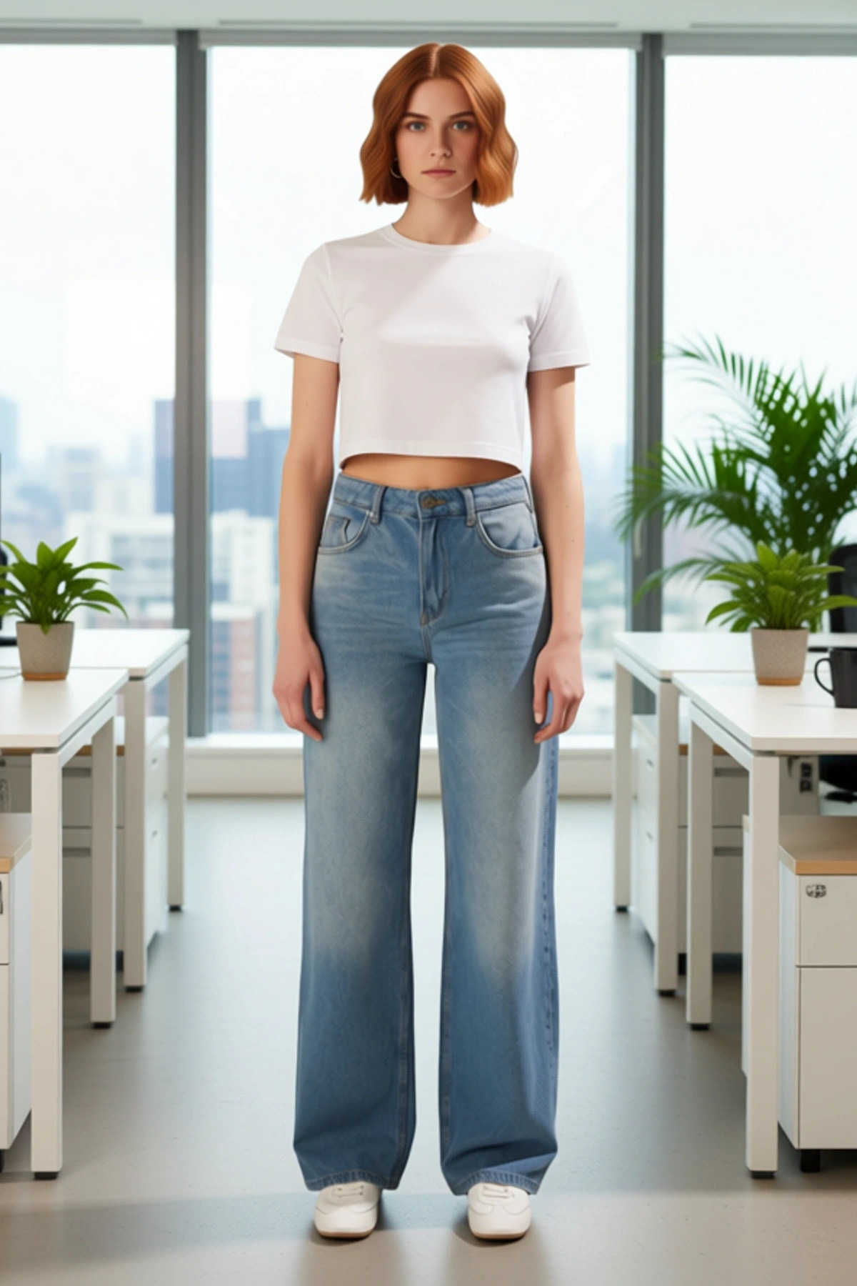 Modern kadının gardırobuna şıklık ve konfor katacak bu açık mavi denim wide leg pantolon, %100 pamuk materyali ile üretilmiştir. Nefes alabilen yapısı ve yumuşak dokusu sayesinde gün boyu rahat bir kullanım sunar. Düz deseni ve canlı açık mavi rengi, her türlü stil ile kolayca uyum sağlar. Geniş paça kesimi, salaş ve modern bir siluet oluşturarak stilinize dinamizm katar. Casual ve günlük kullanım için tasarlanmış bu pantolon, özellikle rahatlığına önem veren ve aynı zamanda şık görünmek isteyen kadınlar için ideal bir tercihtir. Denim kumaşın dayanıklılığı, bu pantolonu uzun yıllar boyunca gardırobunuzun favorisi yapacaktır. Bu geniş paça jean, jean kumaşının klasik dokusunu modern bir yorumla birleştirerek zamansız bir parça haline gelir. Kadınlar için özel olarak tasarlanmış bu model, hem şıklığı hem de rahatlığı bir arada arayanlar için mükemmel bir seçenektir. Bu wide leg jean pantolon, normal bel kesimi ile konforlu bir kullanım sunar. Vücut hatlarını nazikçe sararak rahat bir oturuş sağlar. Geniş paça detayı, güncel moda trendlerine uygun olarak tasarlanmıştır ve pantolona akıcı bir görünüm kazandırır. Rigit dokuma tipi, jean’in formunu korumasına yardımcı olurken, zamanla vücuda uyum sağlayarak kişiye özel bir konfor sunar. Cep detayları hem işlevsel hem de estetik bir görünüm sunar, günlük kullanımda pratiklik sağlar. Bu jean, jean kumaşının klasik dokusunu modern bir siluetle birleştirerek zamansız bir parça haline gelir. Kadınlar için tasarlanan bu model, hem şık hem de rahat bir görünüm arayanlar için mükemmel bir seçenektir. Konforlu kullanımı ve şık tasarımı ile öne çıkar. Bu wide leg jean pantolon, tüm mevsimlerde rahatlıkla kullanılabilir. İlkbahar ve sonbaharda basic tişörtler, sweatshirtler veya ince trikolarla harika bir uyum yakalar. Yaz aylarında ise crop top’lar veya askılı bluzlarla kombinleyerek serin ve stil sahibi bir görünüm elde edebilirsiniz. Pantolon, beyaz spor ayakkabılar, kanvas ayakkabılar veya sandaletlerle mükemmel gider. Daha şık bir görünüm için topuklu botlar veya platform ayakkabılarla da tercih edilebilir. Bu jean, düz renkli bir tişört ve basic bir sneaker ile günlük kullanım için idealdir. Ayrıca, şık bir gömlek ve topuklu ayakkabılarla ofis şıklığı da yakalanabilir. Bakımı kolaydır ve uzun ömürlü kullanım için özel bir bakım gerektirmez.