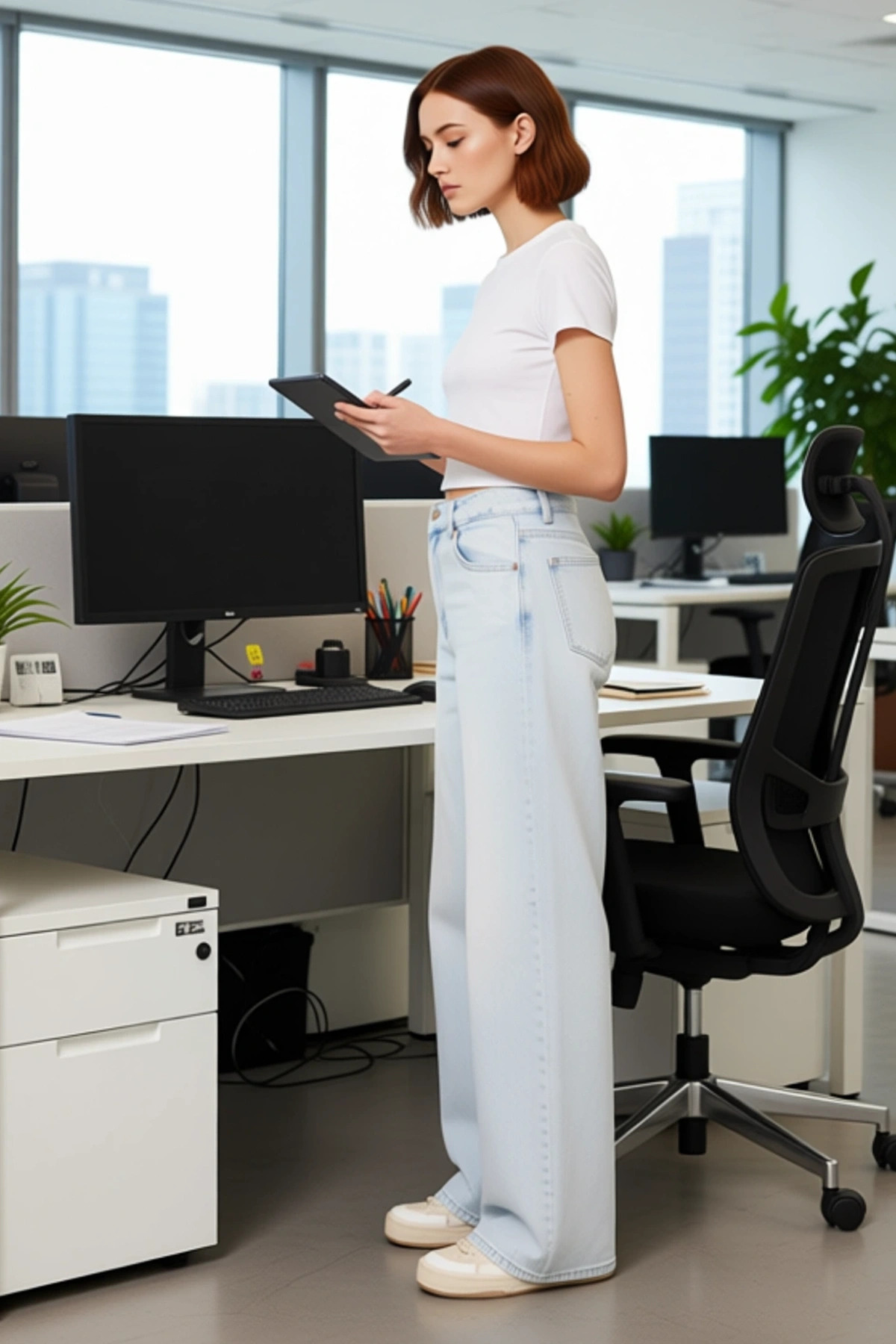 Kadınlar için özel olarak tasarlanmış bu açık mavi, düşük bel ve geniş paça denim pantolon, rahatlığından ödün vermek istemeyenler için biçilmiş kaftan. %100 pamuk materyali, cildinize nazikçe dokunur ve gün boyu ferahlık hissi verir. Düz deseni ve vintage esintili açık mavi rengi, her mevsim ve her stil için uyum sağlayan zamansız bir parça sunar. Wide leg kalıbı, salaş ve modern bir görünüm sağlarken, dayanıklı denim kumaşı uzun süreli kullanım için idealdir. Bu pantolon, günlük şıklığınızı tamamlayacak. Bu pantolonun düşük bel detayı, genç ve dinamik bir görünüm sunarken, geniş paça kesimi hareket özgürlüğü sağlar. Klasik kot pantolon kesimine modern bir yorum getiren bu model, rahatlığı ön planda tutar. Yumuşak dokusu ve esnek yapısı sayesinde gün içinde kendinizi özgür hissetmenizi sağlar. Cep detayları işlevselliği artırırken, özenli dikişleri ürünün kalitesini ve dayanıklılığını pekiştirir. Bu pantolon, hem evde hem de dışarıda rahatlıkla kullanabileceğiniz, çok yönlü bir parçadır. Geniş paça tasarımı, bacak boyunu daha uzun gösterme etkisiyle stilinize zarif bir dokunuş katar. Düz deseni sayesinde farklı üstlerle kolayca eşleşir. Bu geniş paça denim pantolon, her mevsimde rahatlıkla giyilebilir. İlkbahar ve yaz aylarında hafif bir tişört ve sandaletlerle, sonbahar ve kış aylarında ise kazak ve botlarla harika bir uyum yakalar. Beyaz spor ayakkabılar, kalın tabanlı botlar veya şık bir topuklu ayakkabı ile kombinleyebilirsiniz. Üst olarak basic t-shirtler, gömlekler veya sweatshirtler tercih edilebilir. Pantolonun bakımı için ters çevirerek, düşük ısıda ve benzer renklerle yıkama önerilir. Kurutma makinesi kullanımından kaçının.