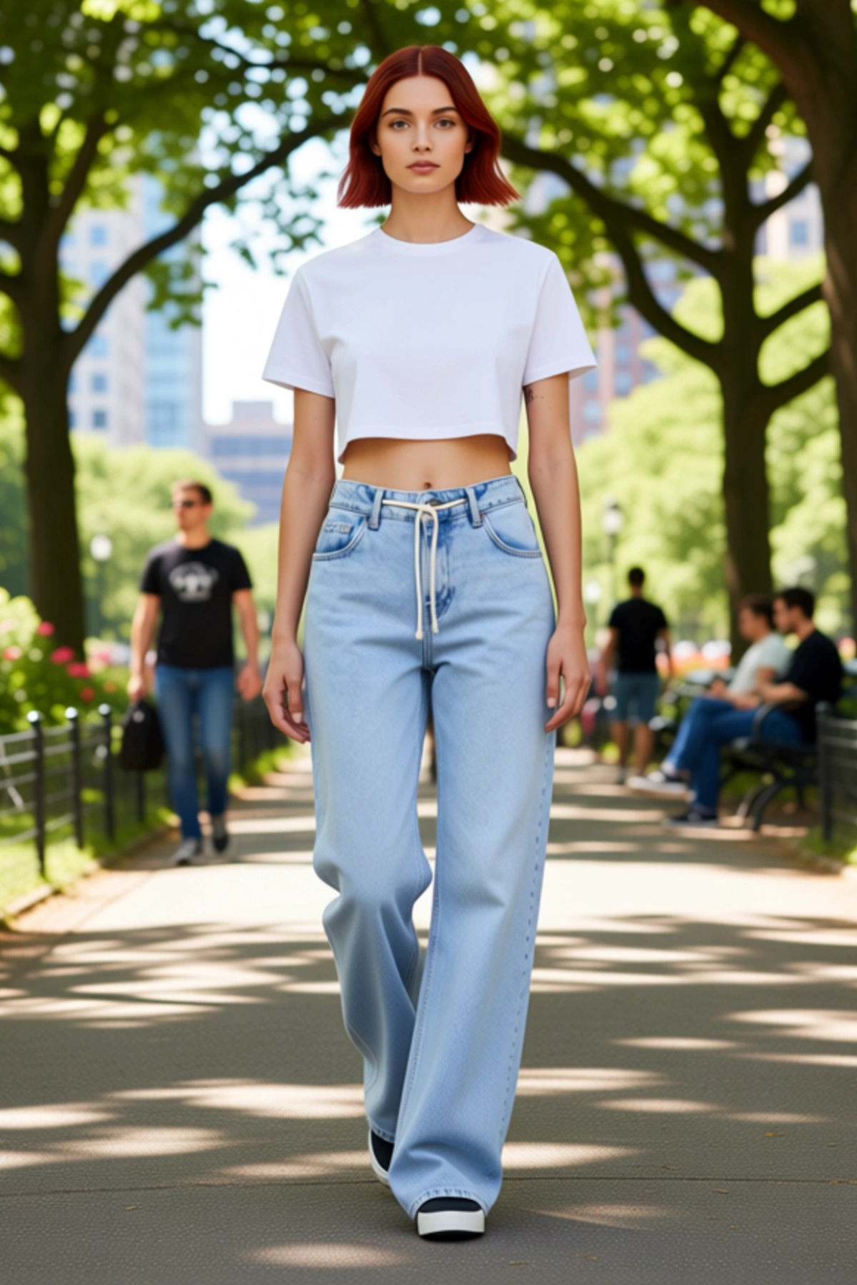 Kadınlar için tasarlanan bu açık mavi jean, modern ve rahat bir stil arayanlar için idealdir. Bol paça kesimi, geniş paçalarıyla gün boyu konfor ve hareket özgürlüğü sunar. %100 pamuk materyali, nefes alabilen ve yumuşak dokusuyla cildinize nazik davranır. Düz deseni ve rejeneratif pamuk kullanımı, hem şık hem de çevre dostu bir tercih olmasını sağlar. Normal bel yüksekliği ve beli bağlamalı detayı, jean’e özgün bir dokunuş katarak stilinizi tamamlar. Bu jean, günlük kullanım için mükemmel bir seçenektir. Bu jean’in öne çıkan özelliği, geniş paça kesimidir. Bu kesim, rahat bir kalıp sunarken aynı zamanda stilinize modern bir hava katar. Normal bel yüksekliği, rahat bir oturuş sağlarken, beli bağlamalı detay, jean’e kişisel bir dokunuş eklemenize olanak tanır. %100 pamuk kumaşı, jean’i hem yumuşak hem de dayanıklı kılar. Rigid dokuma, jean’in formunu korumasına yardımcı olur ve uzun ömürlü kullanım sunar. Bu jean, cool ve konforlu bir persona yansıtır, her anınızda size eşlik eder. Bu bol paça jean, tüm mevsimlerde giyilebilir. İlkbahar ve yaz aylarında serin tutarken, sonbahar ve kış aylarında ise kalın kazaklar ve botlarla harika bir uyum yakalar. Kombin önerisi olarak, basic bir beyaz tişört, sneakerlar ve bir bomber ceket ile rahat bir günlük görünüm elde edebilirsiniz. Daha feminen bir stil için, crop bluz ve platform ayakkabılarla da tercih edilebilir. Bu jean, farklı pantolon ve etek alternatiflerine şık bir alternatif sunar. Bakımı için, düşük sıcaklıkta ve ters çevirerek yıkama önerilir.