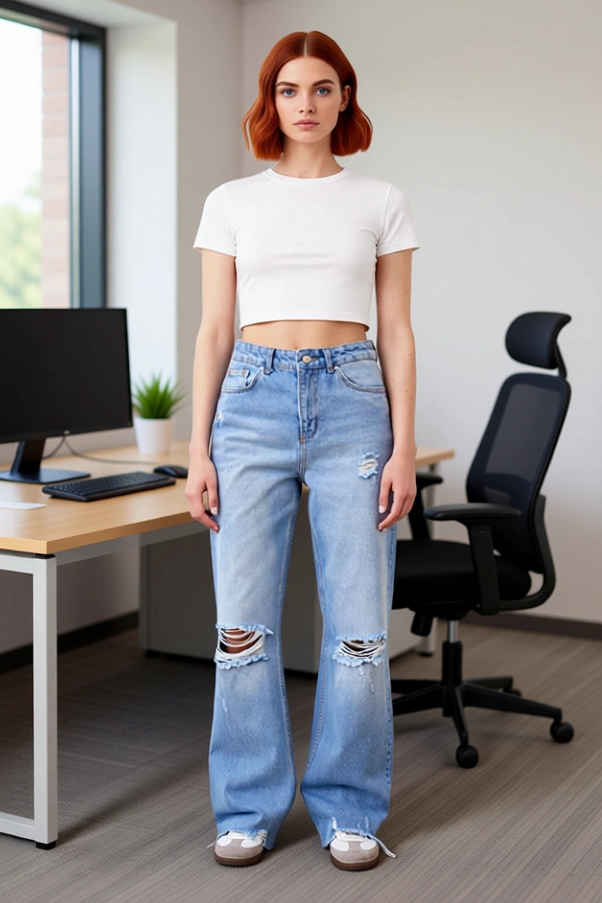 Bu açık mavi bol paça jean pantolon, modern ve rahat bir stil arayan kadınlar için özel olarak tasarlandı. Yüksek bel kesimi, vücut hatlarını vurgulayarak daha zarif bir görünüm sunar. Genişleyen paçaları, hareket özgürlüğü sağlarken, dinamik bir silüet oluşturur. %100 pamuk kumaşı, gün boyu süren bir konfor ve nefes alabilirlik sunar. Üzerindeki yırtık detayları, pantolona asi ve genç bir hava katarak stilinize özgünlük katar. Düz deseni sayesinde, farklı üst giyim parçalarıyla kolayca kombinlenebilir. Bu jean, günlük şıklığınızı tamamlayacak ideal bir parçadır. Cool ve konforlu bir duruş sergilemek isteyenler için mükemmel bir seçimdir. Rigid denim dokuması, pantolonun dayanıklılığını artırırken, zamansız bir moda ifadesi sunar. Bu pantolon, her kadının gardırobunda olması gereken çok yönlü bir parçadır. Bu bol paça jean’in en belirgin özellikleri, yüksek bel yapısı, rahat kesimli bol paçaları ve dikkat çekici yırtık detaylarıdır. Yüksek bel, bel bölgesini nazikçe sararak daha ince bir görünüm sağlarken, bol paçalar rahat bir kullanım sunar. Yırtık detayları, pantolona modern ve cesur bir dokunuş ekler. %100 pamuk içeriği, cildinize yumuşak bir his verir ve hava dolaşımını sağlayarak serin kalmanıza yardımcı olur. Bu jean, hem gündüz hem de gece kullanıma uygun, çok yönlü bir giyim parçasıdır. Günlük işlerinizi hallederken veya arkadaşlarınızla dışarı çıkarken rahatlıkla tercih edebilirsiniz. Bu pantolon, her kadının dolabında bulunması gereken temel parçalardan biridir. Bu bol paça jean pantolon, özellikle ilkbahar ve yaz aylarında rahat bir kullanım sunar. Ancak, doğru kombinlerle her mevsimde şıklık katabilir. Beyaz bir basic tişört ve spor ayakkabılarla kombinleyerek rahat bir günlük stil oluşturabilirsiniz. Daha feminen bir görünüm için, fırfırlı bir bluz ve topuklu sandaletlerle de uyum sağlar. Kot ceket veya bomber ceket ile tamamlayarak sokak modasına uygun bir görünüm elde edebilirsiniz. Pantolonun bakımında, düşük sıcaklıkta ve ters çevirerek yıkama önerilir. Bu, renginin solmasını önler ve yırtık detaylarının zarar görmesini engeller.