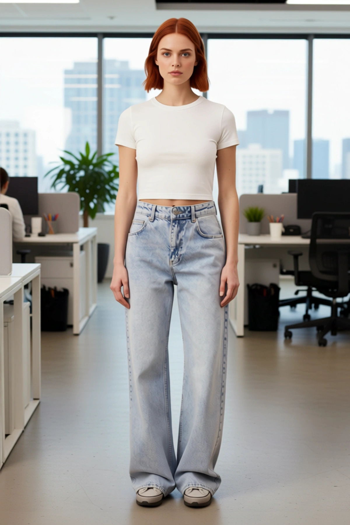 Bu açık mavi denim pantolon, kadınlar için tasarlanmış olup, yüksek bel ve bol kesim özellikleriyle öne çıkar. %100 pamuk materyali, gün boyu süren bir konfor ve nefes alabilirlik sunar. Düz deseni ve klasik denim dokusu, zamansız bir stil yaratır. Geniş paça yapısı, modern bir silüet sunarken, yüksek bel detayı da vücut şeklini vurgular. Bu pantolon, casual ve günlük kullanıma uygun olup, cool ve rahat bir görünüm elde etmek isteyenler için idealdir. Denim kumaşın dayanıklılığı ve esnekliği, pantolonun uzun ömürlü olmasını sağlar. Kadınların gardıroplarında rahatlıkla kullanabilecekleri, hem şık hem de pratik bir parçadır. Bu pantolon, her yaş grubundan kadının beğenisini kazanacak bir tasarıma sahiptir. Bu bol kesim denim pantolonun en belirgin özellikleri arasında yüksek bel kesimi ve genişleyen paça yapısı yer alır. Bu tasarım, rahat bir hareket imkanı sunarken aynı zamanda şık bir duruş sergiler. %100 pamuk kumaş, cilde dostu bir yapıya sahip olup, yumuşaklığı ve nefes alabilirliği ile bilinir. Düz desen, pantolonun çok yönlü kullanımını destekler; böylece farklı üst giyim parçalarıyla kolayca uyum sağlar. Rigid denim dokuması, pantolonun zamanla daha da karakter kazanmasına olanak tanır. Bu pantolon, özellikle rahatlığı ön planda tutan ve modern bir stil arayan kadınlar için tasarlanmıştır. Günlük aktiviteler sırasında maksimum konfor sunar. Bu bol kesim denim pantolon, özellikle ilkbahar, yaz ve sonbahar aylarında kullanıma uygundur. Beyaz bir basic tişört, salaş bir sweatshirt veya şık bir gömlek ile mükemmel bir uyum yakalayabilirsiniz. Altına spor ayakkabı, bot veya loafer gibi farklı ayakkabı modelleri tercih edebilirsiniz. Daha havalı bir görünüm için ise kısa bir üst ve platform ayakkabılarla kombinleyebilirsiniz. Pantolonun uzun ömürlü olması için, düşük sıcaklıkta ve benzer renklerle birlikte makinede yıkanması tavsiye edilir. Kuru temizleme ve ağartıcı kullanımından kaçınılmalıdır.