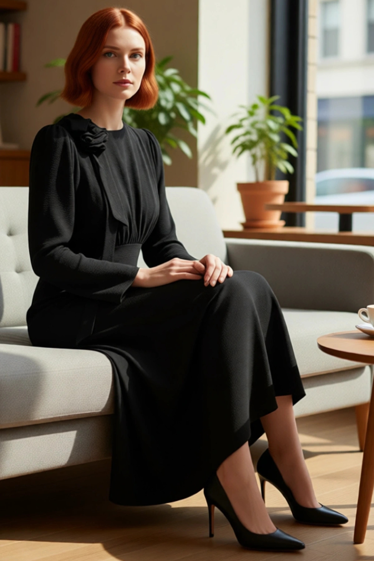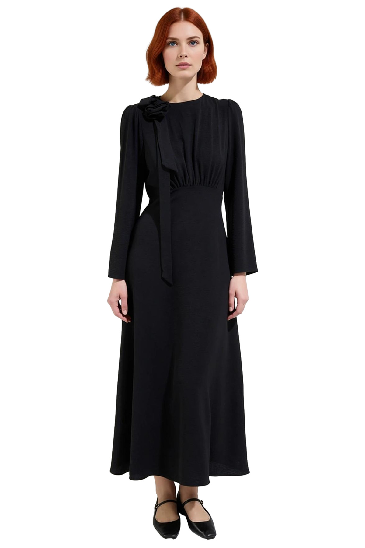 Kadın Aerobin Dokuma Fiyonk Detaylı Maxi Boy Balık Kalıp Uzun Kollu Bisiklet Yaka Düz Elbise