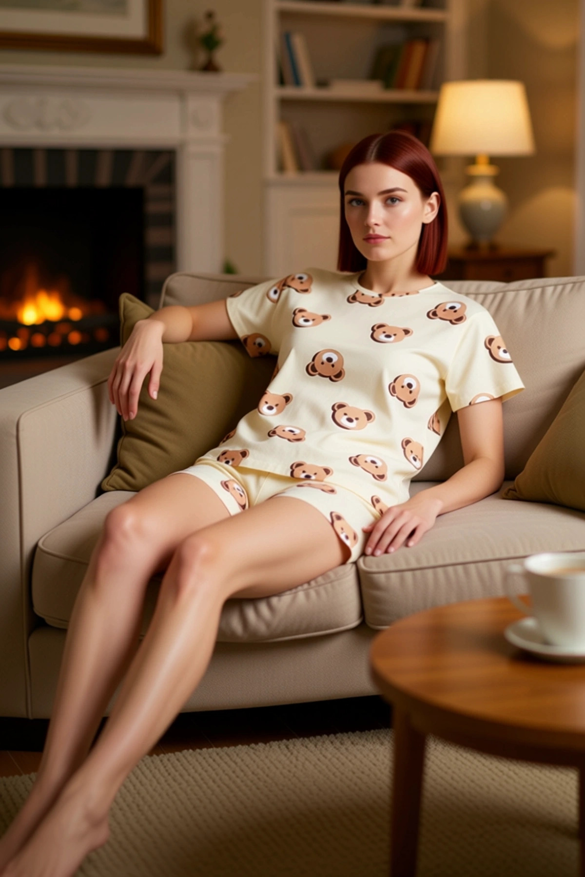Kadın Ayıcık Desenli Pamuklu Pijama Takımı Lounge Giyim Fonksiyonel Dayanıklı Kaliteli Şık