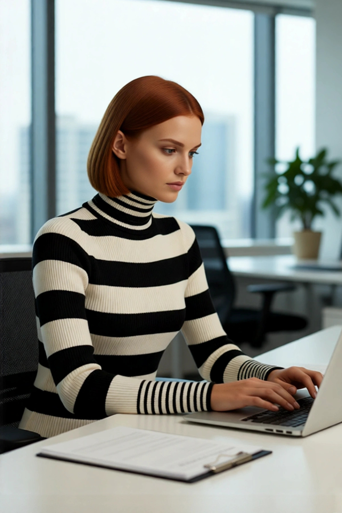 Kadınlara özel tasarlanan bu şık Balıkçı Yaka Triko Kazak, dinamik çizgili deseniyle modern bir stil sunar. Regular kalıbı, vücuda nazikçe oturarak gün boyu hareket özgürlüğü ve rahatlık vaat eder. %100 akrilik materyalden üretilen bu kazak, kış mevsiminin dondurucu soğuklarına karşı üstün koruma sağlarken, aynı zamanda cildinize pürüzsüz ve yumuşak bir dokunuş sunar. Siyah ve ekru çizgilerin harmonisi, her kombinle uyum içinde zarif bir görünüm yaratır. Cepsiz ve sade tasarımı, “Cool & Comfort” felsefesini benimseyen kadınların tercihi olacaktır.