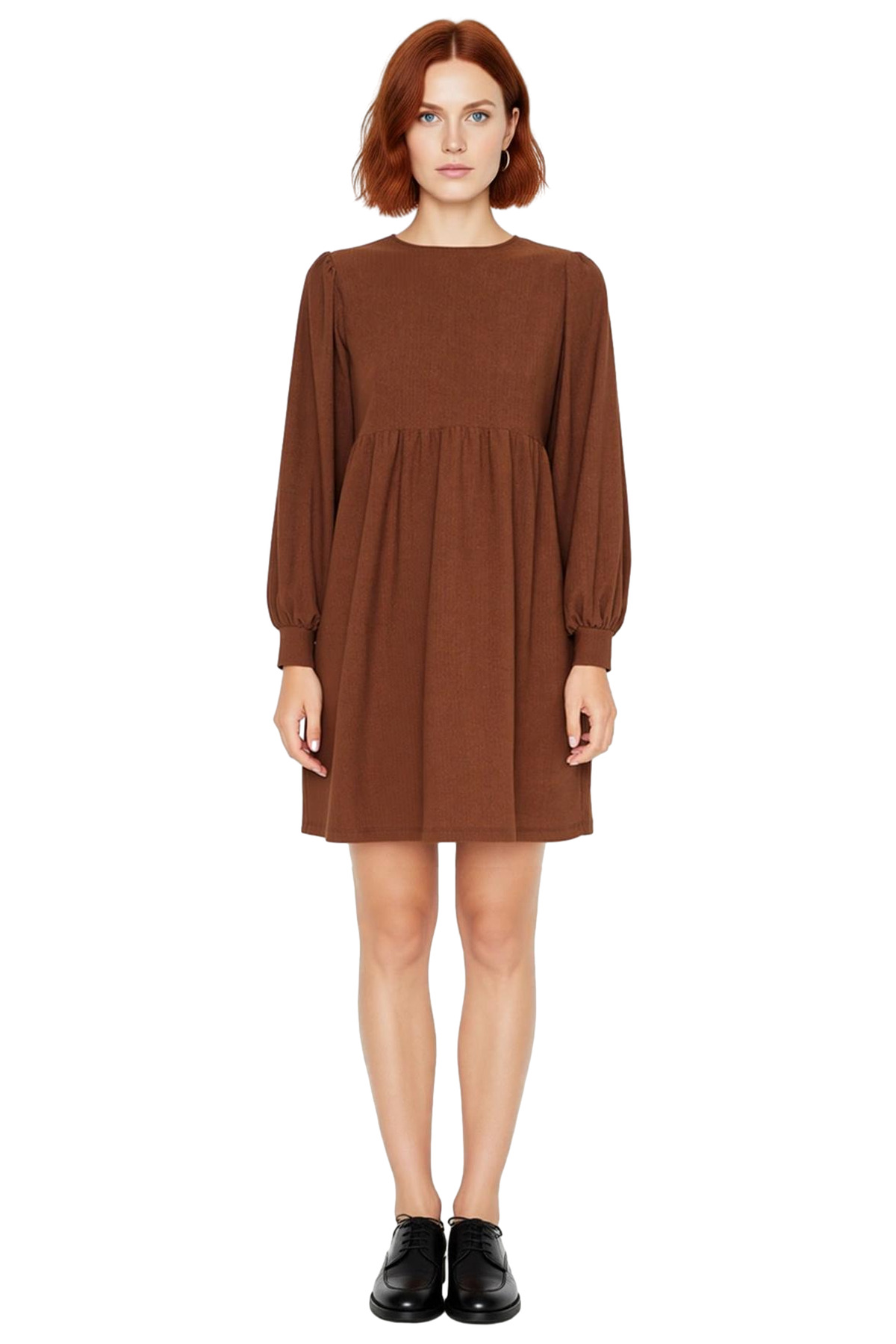 Kadın Balon Kol Örme Bürümcük Dokulu Bisiklet Yaka A Kesim Mini Elbise Kış Kombinleri İçin İdeal