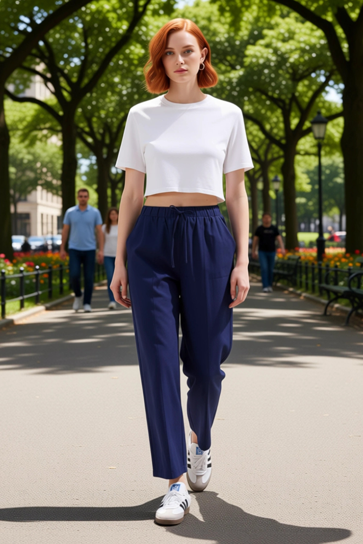 Rahatlığı ve şıklığı bir arada sunan bu kadın pantolonu, şalvar kesimi ve beli lastikli tasarımıyla öne çıkıyor. Yüksek bel özelliği, konforlu bir kullanım sağlarken, aynı zamanda modern bir görünüm sunar. Düz lacivert rengi, her mevsim ve her stil ile uyum sağlayabilen zamansız bir seçenektir. %50 pamuk ve %50 polyesterden oluşan terrycotton kumaşı, yumuşak dokusu ve nefes alabilirliği ile gün boyu rahatlık sunar. Bu pantolon, özellikle rahatına düşkün ama stilinden taviz vermek istemeyen kadınlar için mükemmel bir tercihtir. Havuç/şalvar kalıbı, hareket özgürlüğü sağlayarak günlük aktivitelerinizde size eşlik eder. Dokuma tipi terrycotton, kumaşa hafif bir mat doku kazandırarak pantolona sofistike bir görünüm katar.