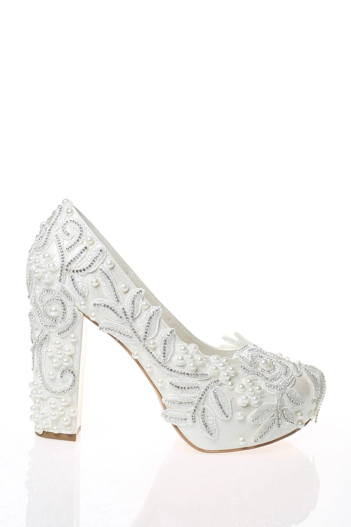 Kadın Beyaz Sedef Inci Taş Işlemeli Gelin Ayakkabı modeli, şıklığı ve konforu bir araya getirerek özel günler, davetler ve gece organizasyonları için ideal bir tercihtir. Modern tasarımı ve kaliteli yapısı sayesinde stilinize zarafet katar. Topuklu yapısıyla duruşunuzu güzelleştirirken, rahat kalıbı ile gün boyu konfor sunar.