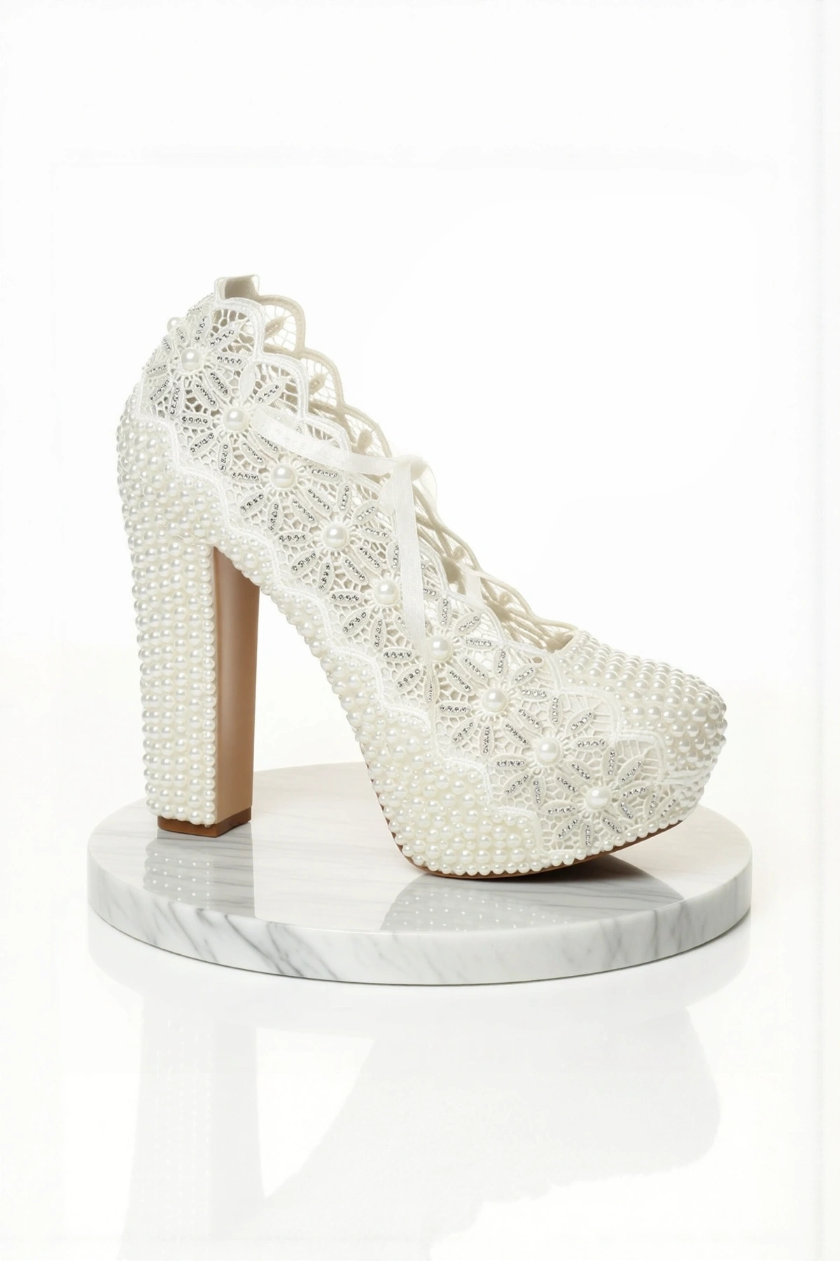Kadın Beyaz Sedef Inci Taş Işlemeli Gelin Ayakkabı Kadın Topuklu Abiye Ayakkabı Şık Gece Ayakkabısı - Görsel 4