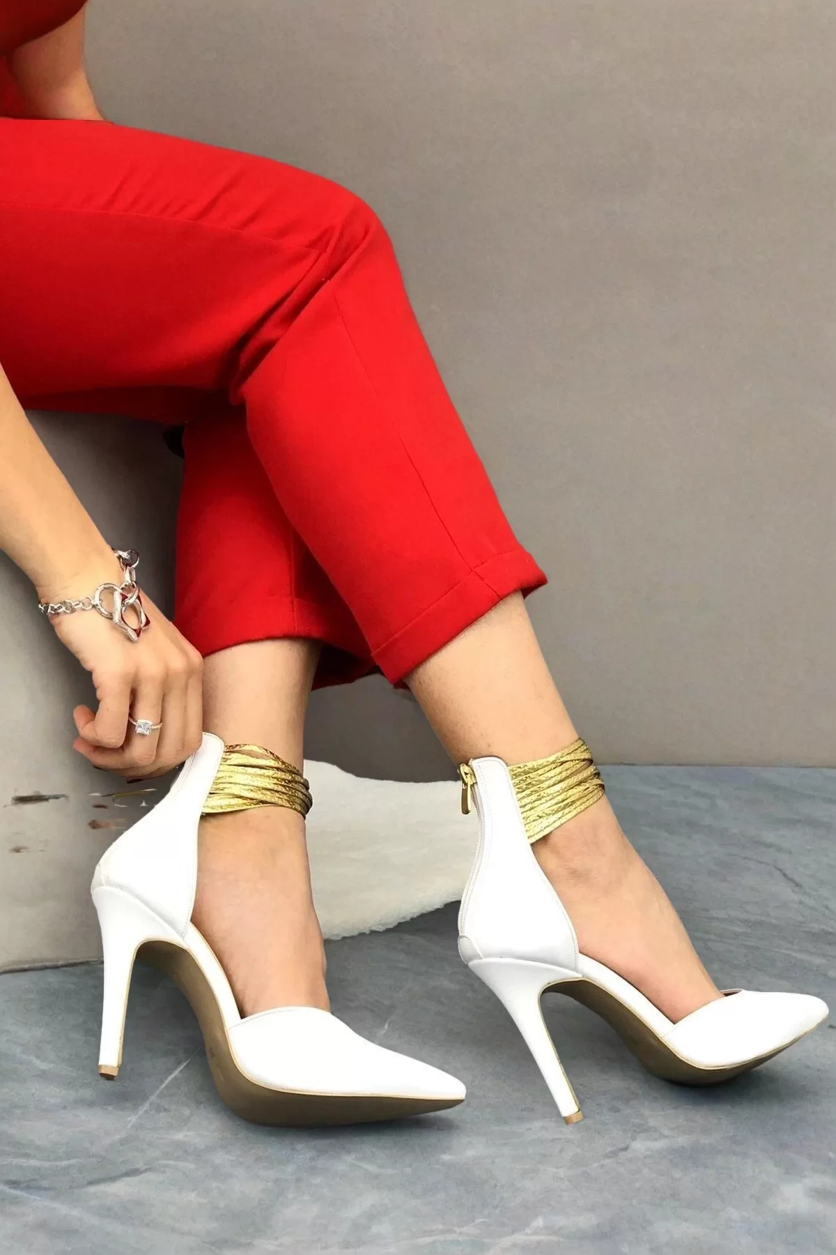 Modern stilin simgesi haline gelen bu ayakkabı altın bilek halkası detayıyla klasik şıklığa güçlü bir yorum getirir Mat ve kadifemsi yüzeyiyle feminenliğin en yumuşak halini sunarken ince topuğu ve sivri burun formu her adımda zarif bir duruş sergiler Işıltılı ama zarif olmayı seven kadınların dolabında mutlaka yer almalı