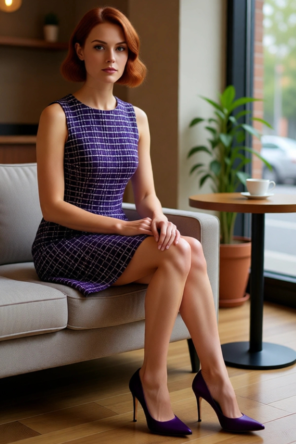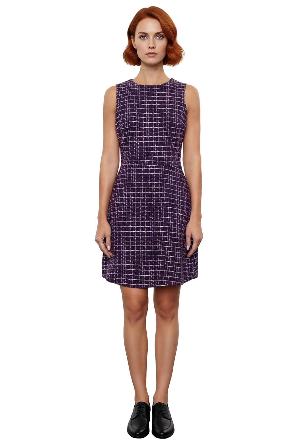 Kadın Bisiklet Yaka A Kesim Mini Elbise Standart Kolsuz Ekose Desen İş Hayatı İçin Dokuma Kaliteli