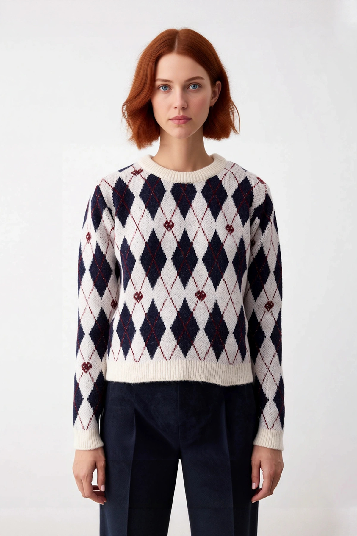 Kış gardırobunuzun vazgeçilmezi olacak bu kadın triko kazak, bisiklet yaka tasarımıyla klasik ve modern çizgiyi bir araya getiriyor. Kalın yapısıyla soğuk günlerde ideal bir koruma sağlarken, akrilik ve polyester karışımı materyali yumuşak bir dokunuş sunar. Göz alıcı baklava deseni, içindeki zarif kalp motifleri ve ışıltılı sim iplikleriyle dikkat çeker. Ekru rengi, her türlü alt giyimle kolayca kombinlenebilir, size şık ve rahat bir deneyim sunar. Günlük kullanım ve özel günler için mükemmeldir.