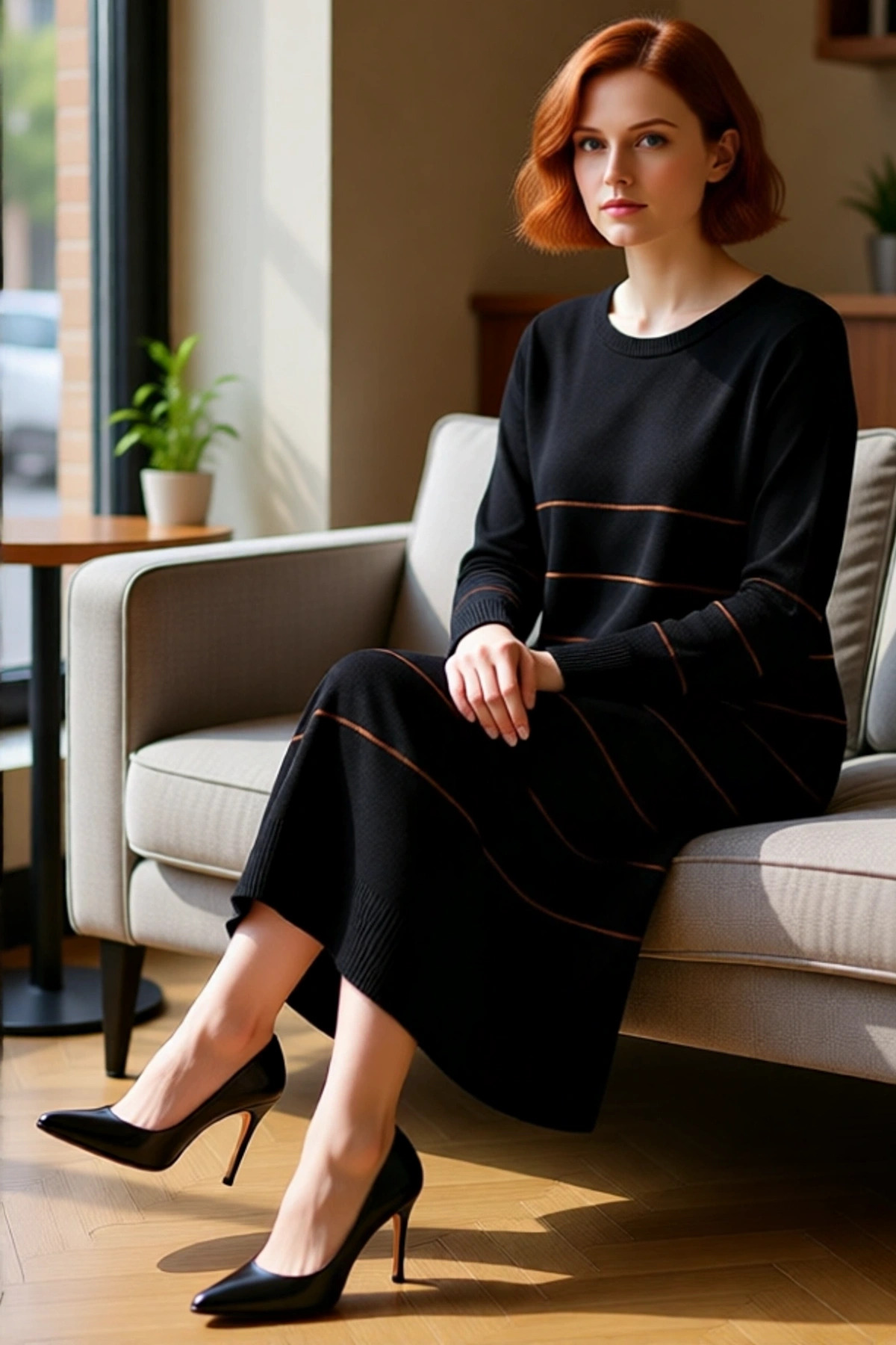 Bu şık Kadın A-line triko elbise, bisiklet yaka ve uzun standart kol detaylarıyla klasik zarafeti modern çizgilerle buluşturuyor. Siyah zemin üzerine kahverengi çizgili deseni, hem dinamik hem de sofistike bir duruş sergiliyor. %100 akrilik materyalden üretilen bu elbise, soğuk kış günlerinde üst düzey sıcaklık ve yumuşak bir dokunuş vaat ederken, astarsız ve cepsiz tasarımıyla hafif ve konforlu bir kullanım sunar. Kemersiz yapısı sayesinde kendi tarzınıza göre farklı aksesuarlarla kişiselleştirilebilir.