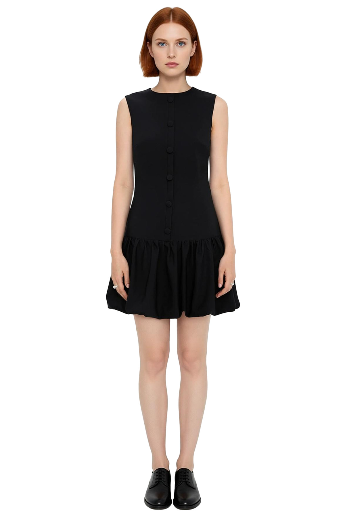 Ürün Özellikleri: Skater kalıp, polyester-elastan materyal, düz desen, bisiklet yaka, kolsuz, dokuma kumaş, siyah renk.