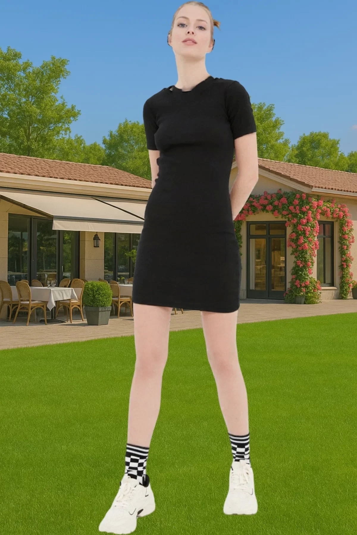Kadın Bisiklet Yaka Kısa Kollu Mini Elbise Polyester Örme Günlük Kaliteli İşçilik Şık Görünüm