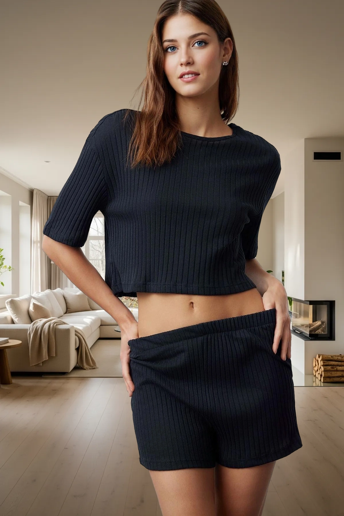 Bu kadın pijama takımı, yumuşak dokusu ve modern tasarımı ile ev giyimi stilinize konfor katacak. Gri rengi ve fitilli örme kumaşı, takıma zarif bir görünüm kazandırır. %65 polyester ve %35 pamuk karışımı, hem dayanıklılık hem de nefes alabilirlik sunarak gün boyu rahatlık sağlar. İpliği boyalı özelliği, rengin solmasını önleyerek ilk günkü canlılığını korur. Üzerindeki zarif şerit detayları, takıma dinamik bir dokunuş ekler. Bu pijama takımı, evde geçirdiğiniz zamanı daha keyifli ve şık hale getirmek için özenle tasarlanmıştır. Koleksiyonun homewear parçalarından biri olarak, rahatlığınızdan ödün vermeden stilinizi yansıtmanıza olanak tanır. Takımın bisiklet yaka ve kısa kollu tişörtü, hareket özgürlüğünüzü kısıtlamayan regular kalıbı ile tasarlanmıştır. Şortu ise normal bel ve boru paça kesimi ile konforlu bir kullanım sunar. Kaşkorse dokuma tipi, kumaşa esneklik kazandırarak vücudunuza nazikçe uyum sağlar. Basic silueti, her yaşa ve tarza hitap ederken, cool ve comfort persona’sı ile rahatlığın ön planda olduğu bir stil sunar. Lounge ve ev ortamları için ideal olan bu takım, hafifliği ve yumuşaklığı ile kendinizi şımartmanızı sağlar. Günlük kullanım için hem pratik hem de şık bir seçenektir. Yaz mevsiminin sıcak günlerinde serin ve rahat hissetmenizi sağlayacak bu pijama takımı, jean şortlar, keten pantolonlar veya eteklerle şık bir şekilde kombinlenebilir. Ev terlikleri, sandaletler veya spor ayakkabılar ile tamamlayarak günlük stilinizi oluşturabilirsiniz. Bakımı oldukça kolay olan ürün, 60 dereceye kadar yıkanabilir olmasıyla pratik bir kullanım sunar. Bu takım, hem kendiniz için bir zevk hem de sevdikleriniz için düşünceli bir hediye alternatifi olacaktır.