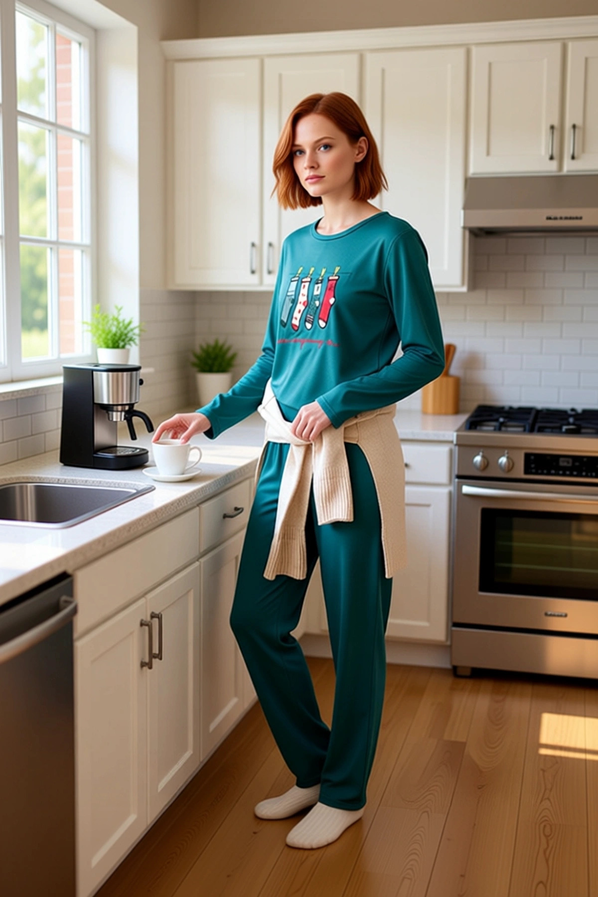 Bu kadın ev giyim takımı, %100 polyester kumaştan üretilmiş olup, yumuşak ve konforlu bir dokuya sahiptir. Üzerindeki sevimli çorap nakışları, ürüne neşeli ve özgün bir karakter katmaktadır. Baskılı desen, kış temalı bir atmosfer yaratırken, genel görünümü tamamlar. Regular kalıp, her vücut tipine uyum sağlayarak rahat bir kullanım sunar. Süprem dokuma, kumaşın hava almasına yardımcı olur ve cilde dost bir his verir. Bu takım, özellikle evde dinlenirken veya rahat bir gün geçirirken tercih edilebilecek ideal bir homewear parçasıdır. Lounge ve ev ortamları için tasarlanmış olup, cool ve konforlu bir stil arayan kadınlar için biçilmiş kaftandır. Ürün, estetik görünümü ve kullanım kolaylığı ile öne çıkar. Takımın bisiklet yaka detayı, klasik bir görünüm sunarken, uzun kollu yapısı soğuk havalarda sıcaklık sağlar. Pantolonun boru paça kesimi, hareket özgürlüğünü artırır ve rahat bir kullanım deneyimi sunar. Normal bel özelliği, pantolonun vücuda tam oturmasını sağlayarak konforu en üst düzeye çıkarır. Patch nakış tekniği ile işlenen desen, takıma sofistike bir dokunuş ekler. Bu ürün, günlük yaşamda rahatlığı ön planda tutan ancak stilinden ödün vermek istemeyen kadınlar için tasarlanmıştır. Yumuşak tuşesi ve şık tasarımı ile ev giyim gardırobunun vazgeçilmez bir parçası olacaktır. Kış mevsiminde rahatlıkla kullanabileceğiniz bu pijama takımı, t-shirt ve uzun pantolon olarak iki parçadan oluşmaktadır. Bu takımı, pelüş terlikler veya kalın çoraplarla tamamlayarak kışın en soğuk günlerinde bile sıcacık kalabilirsiniz. Ayrıca, üzerine alacağınız rahat bir kapüşonlu sweatshirt ile de evde şık bir görünüm elde edebilirsiniz. Ürünün uzun ömürlü olması için belirtilen bakım talimatlarına dikkat edilmesi önemlidir. Bu takım, evdeki zamanınızı daha keyifli ve konforlu hale getirmek için özenle hazırlanmıştır.