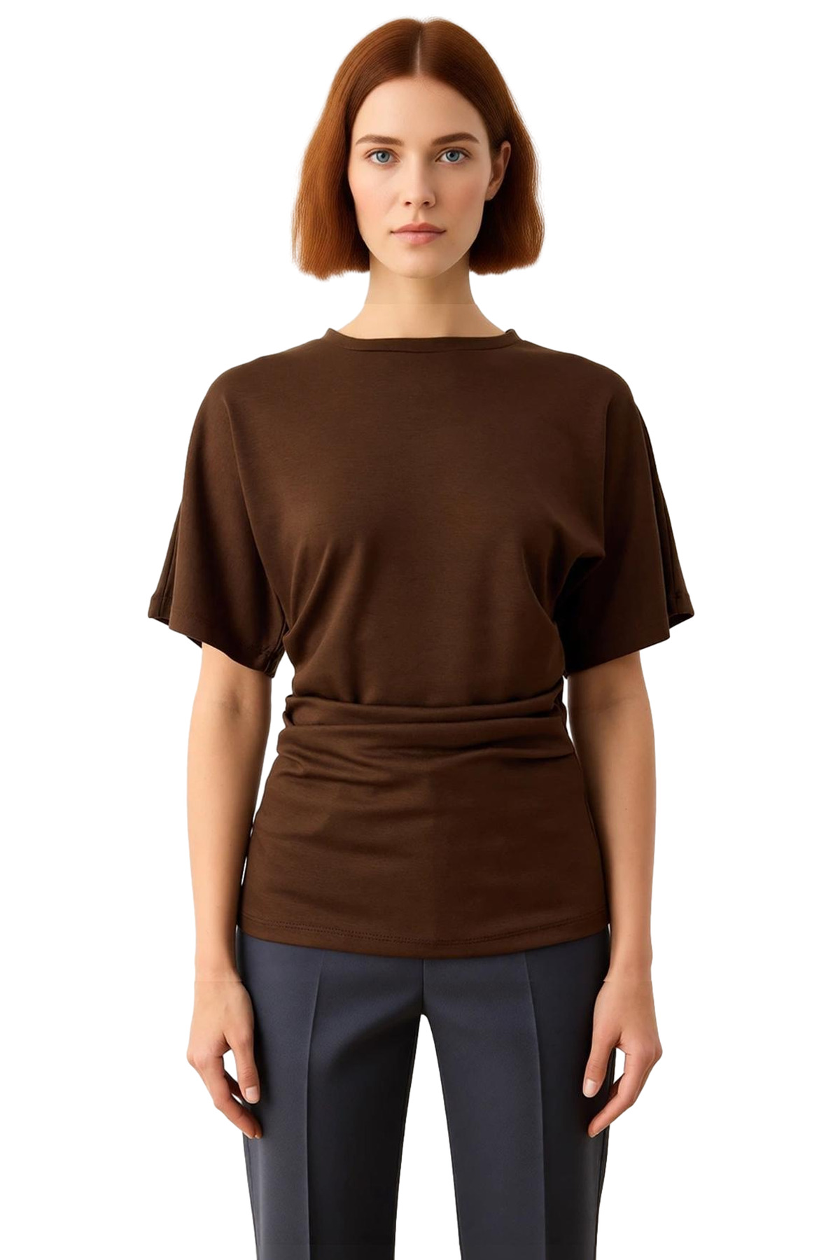Bu zarif örme bluz, modern kadının gardırobuna şıklık katmak için tasarlandı. Düz deseni ve regular kalıbı ile her vücut tipine uyum sağlayan bu parça, bisiklet yaka detayıyla klasik bir görünüm sunarken, yarasa kol kesimi ile de dinamik bir hava katıyor. Ürünün en dikkat çekici özelliği, beli saran büzgü ve drape detaylarıdır. Bu detaylar, bluzun vücuda oturan bir siluet oluşturmasını sağlarken, aynı zamanda hareketli ve feminen bir görünüm elde etmenize yardımcı olur. Kısa kol boyu, özellikle mevsim geçişlerinde ve daha sıcak havalarda rahat bir kullanım sunar. İş ortamında veya özel davetlerde tercih edilebilecek business odaklı bir tasarıma sahip olan bu bluz, pileli silueti ile de sofistike bir duruş sergiliyor. Fake triko dokuma tipi, örme kumaşın yumuşaklığını ve dökümlülüğünü sunarken, %100 polyester materyal bileşeni uzun ömürlü kullanım ve kolay bakım imkanı sağlıyor. Kış sezonu için ideal olan bu bluz, Hassas Yıkama yıkama talimatına uygun olarak temizlenebilir. Türkiye’de üretilen bu ürün, stil sahibi kadınlar için hem konforu hem de estetiği bir arada sunuyor. Bu bluz, jean pantolonlarla günlük şıklık yakalamak isteyenler için de harika bir seçenek olabilir. Farklı aksesuarlarla kolayca kombinlenebilen bu parça, gardırobunuzun vazgeçilmez bir parçası haline gelecektir. Ürünün genel dokusu, yumuşak ve pürüzsüz bir his verirken, vücut hatlarını nazikçe vurgulayan bir yapıya sahiptir. Bu bluz, hem gündüz hem de gece kullanımı için uygun olup, farklı stil tercihlerine hitap etmektedir. Kadınlar için tasarlanmış bu bluz, şıklığı ve rahatlığı bir arada arayanlar için ideal bir tercihtir. Ürünün dökümlü yapısı, hareket özgürlüğü sağlarken, zarif detayları da göz doldurmaktadır. Bu bluz, her kadının dolabında bulunması gereken zamansız bir parçadır.
