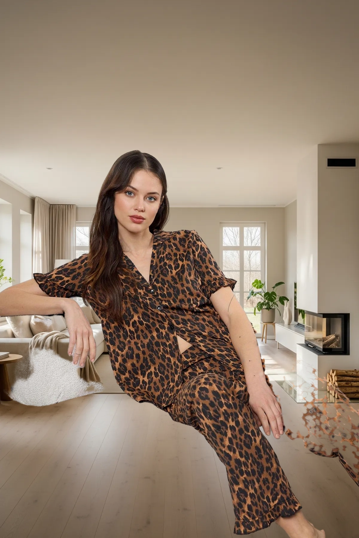 Kadın Boru Paça Pijama Altı ve Gömlek Takımı Fonksiyonel Dayanıklı Kaliteli Konforlu Rahat