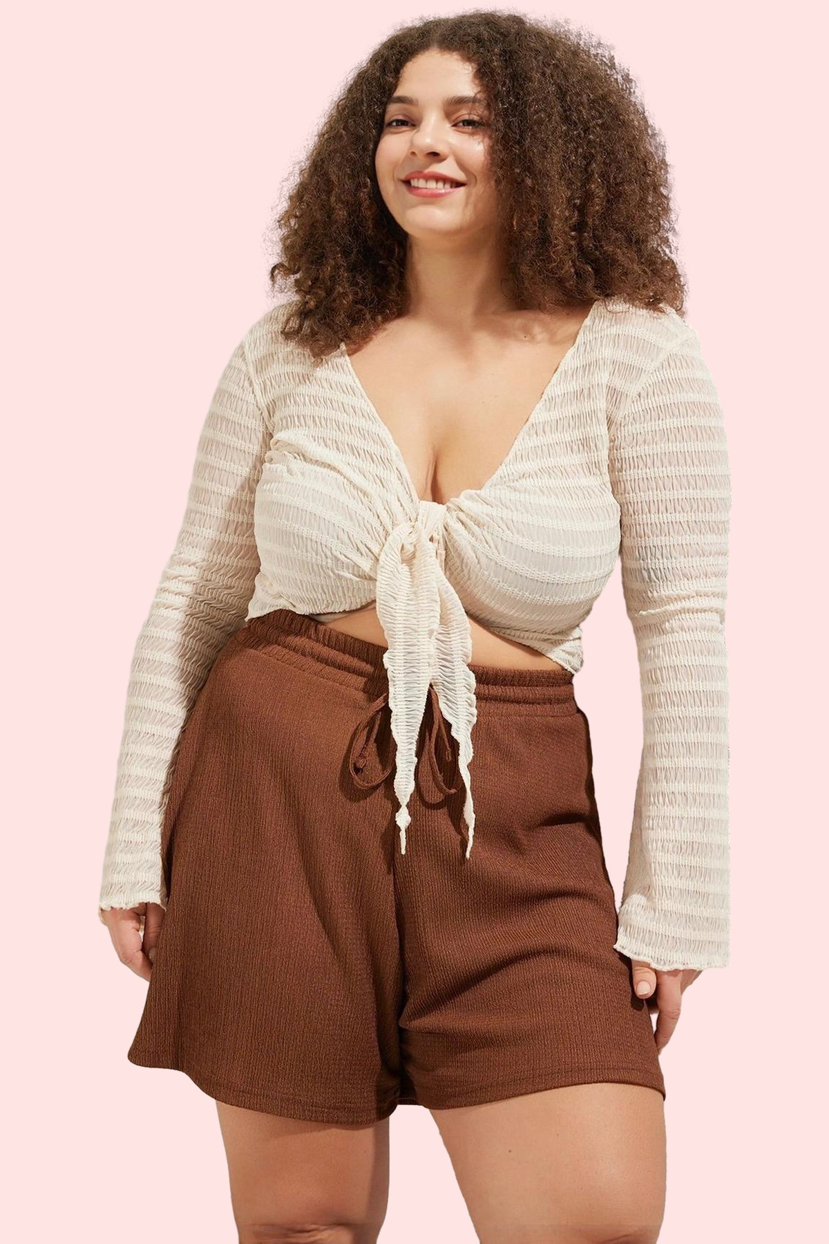 Kadın Büyük Beden Geniş Paça Kısa Örme Şort Rahat Günlük Stil Hafta Sonu Dayanıklı Malzeme