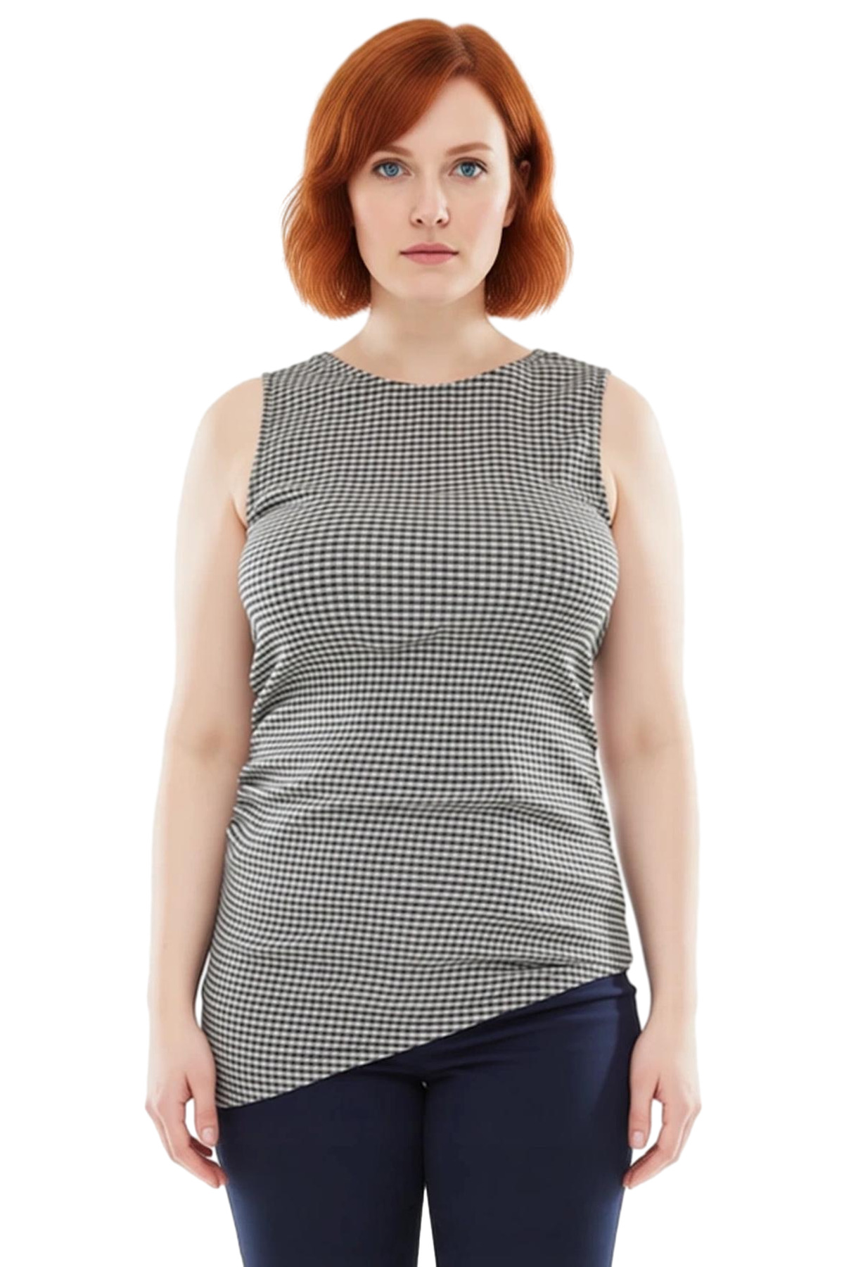 Bu özel tasarım bluz, modern kadının gardırobuna şıklık ve konfor katmak için üretilmiştir. Polyester materyalden imal edilmiş olup, örme kumaş yapısı sayesinde gün boyu süren bir rahatlık sunar. Ürünün en dikkat çekici özelliği, asimetrik kesiminin verdiği dinamik görünüm ve klasikleşmiş kareli desenin modern yorumudur. Bu detaylar, sıradan bir parçayı sanatsal bir tasarıma dönüştürür. Kayık yaka detayı, zarif bir duruş sergilerken, kolsuz kesimi sıcak günlerde ferah bir kullanım sağlar. Regular boyu, vücut hatlarını nazikçe takip ederek vücut hatlarını belirginleştiren bir silüet oluşturur. Günlük kullanım için ideal olan bu bluz, farklı alt giyim ürünleriyle kolayca uyum sağlayarak çok yönlü bir stil imkanı sunar. Jean pantolonlar, kumaş pantolonlar, etekler ve hatta şortlarla kombinleyerek farklı görünümler elde edebilirsiniz. Bürümcük dokusu, kumaşa hoş bir doku ve esneklik kazandırır, bu da giyim konforunu artırır. %100 polyester içeriği, ürünün dayanıklılığını ve kolay bakımını garanti eder. Türkiye’de özenle üretilen bu bluz, Hassas Yıkama yıkama talimatına uygun olarak temizlendiğinde uzun yıllar ilk günkü gibi kalacaktır. Büyük beden seçenekleriyle her vücut tipine hitap eden bu parça, kadınların kendilerini daha özgüvenli ve rahat hissetmelerini sağlar. Klasik desenlerin modern tasarımlarla buluştuğu bu bluz, hem gündüz hem de akşam aktiviteleri için uygun bir seçenektir. İş hayatından sosyal etkinliklere kadar her alanda stil sahibi bir duruş sergilemenize yardımcı olur. Ürünün hafifliği ve nefes alabilen yapısı, özellikle uzun süreli kullanımlarda bile konforu ön planda tutar. Bu bluz, stilinizi bir üst seviyeye taşımak ve kendinizi özel hissetmek için harika bir yatırımdır.