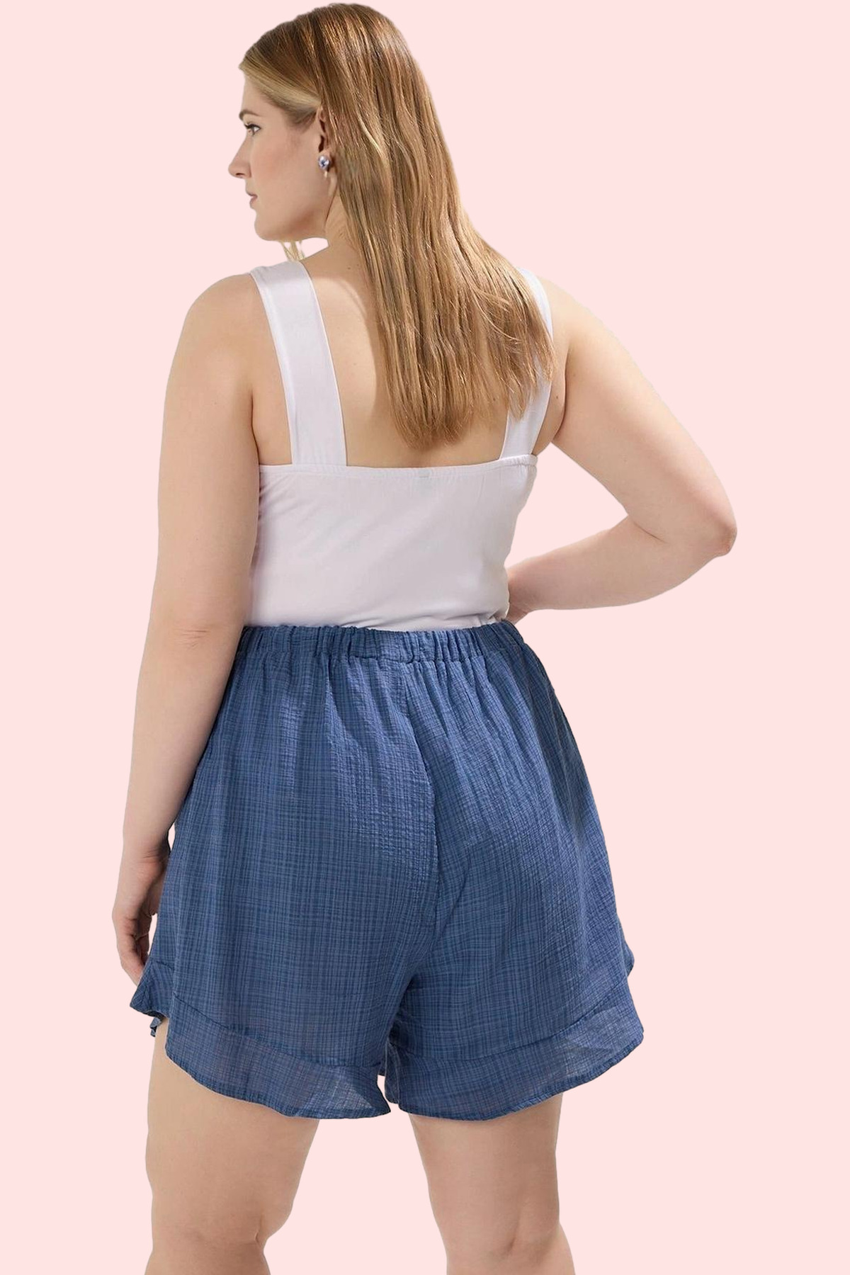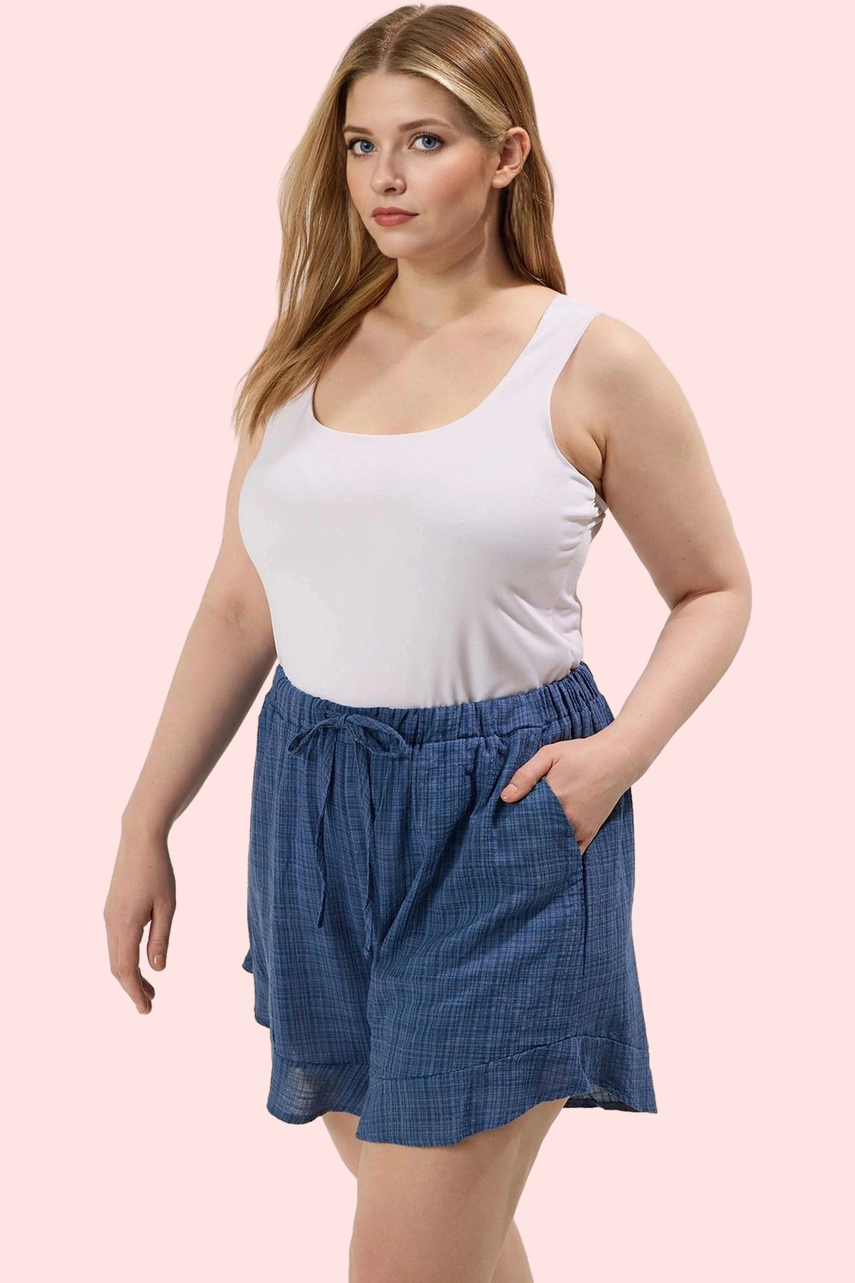 Sıcak yaz günlerinde rahatlığı ve şıklığı bir arada sunan bu büyük beden keten görünümlü şort ile tanışın! %69 pamuk ve %31 viskoz karışımıyla üretilen yumuşak ve nefes alabilen kumaşı, gün boyu konforlu bir kullanım sağlar. Relaxed kesimiyle her vücut tipine uyum sağlayan şortumuz, geniş paçası ile hareket özgürlüğü sunar. Kısa boyu, sıcak havalarda serin kalmanıza yardımcı olurken, düz mavi rengi her kombininize kolaylıkla uyum sağlar. Günlük hayatta, plajda, hafta sonu gezilerinizde ve arkadaşlarınızla buluşmalarınızda rahatlıkla kullanabileceğiniz bu şort, gardırobunuzun yeni favorisi olacak.