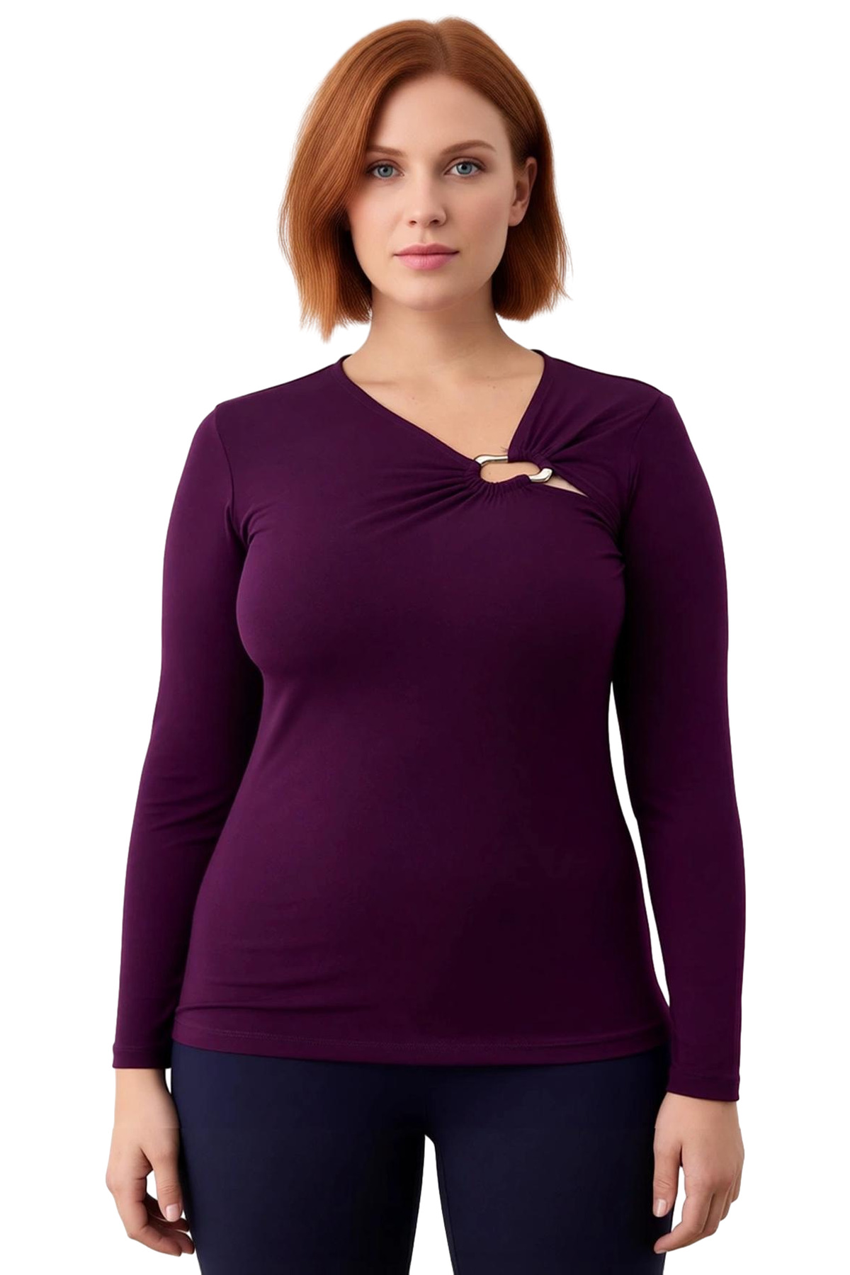 Kadınlar için özel olarak tasarlanmış bu büyük beden örme bluz, şıklığı ve konforu bir arada sunuyor. Ürünün en dikkat çekici özelliği, zarif asimetrik yaka detayıdır. Bu yaka kesimi, klasik bluz tasarımlarından farklılaşarak, modern ve sofistike bir görünüm kazandırır. Yaka kısmında yer alan metal aksesuar detayı, ürüne ekstra bir stil katmanı eklerken, aynı zamanda bluzun genel estetiğini de güçlendirir. Bluzun kalıbı regular olup, uzun kollu ve standart kesimlidir. Bu özellikler, ilkbahar ve sonbahar gibi geçiş mevsimlerinde rahat bir kullanım sunar. Kumaş tipi örme olup, %96 polyester ve %4 elastan karışımından oluşmaktadır. Bu materyal bileşimi, kumaşa hem yumuşak bir dokunuş hem de esneklik kazandırır, böylece gün boyu konforlu bir deneyim sağlar. Sandy dokuma tipi, kumaşa hoş bir yüzey dokusu verir. Düz desenli bu bluz, her türlü casual kombinle kolayca uyum sağlayabilir. Üretim yeri Türkiye’dir ve kadınlara hitap etmektedir. Feminine persona ile uyumlu olan bu bluz, hem günlük kullanımda hem de daha özel anlarda tercih edilebilir. Ürünün bakımı için Hassas Yıkama yıkama talimatlarına uyulması tavsiye edilir. Bu bluz, vücut hatlarını nazikçe saran yapısıyla, her bedende şık bir duruş sergiler. Aksesuar detayı, bluzun ön kısmında, yaka oyuntusunun hemen altında yer alarak, bakışları üzerine çeker. Bu bluz, hem rahatlığı hem de stil sahibi duruşuyla öne çıkarak, gardırobunuzun temel parçalarından biri olmaya adaydır.