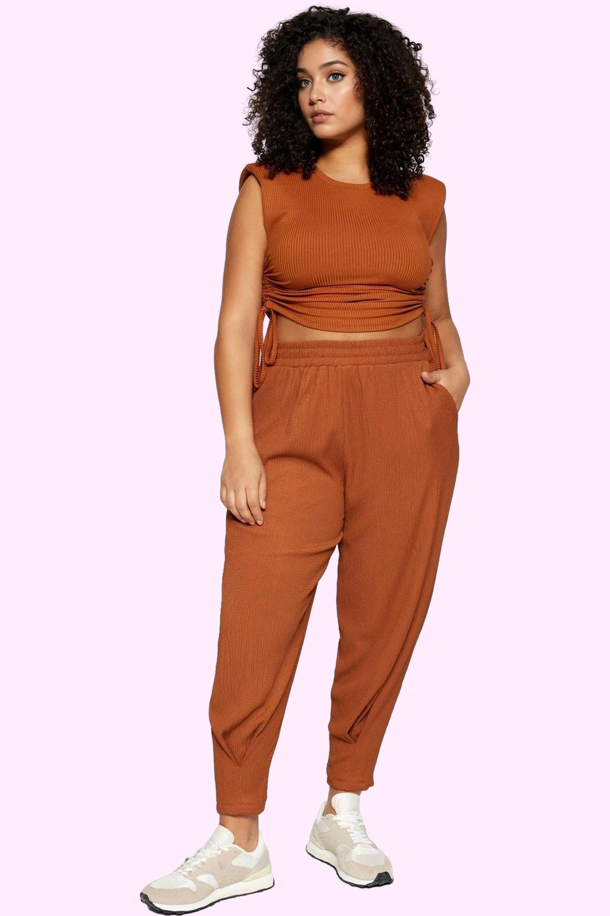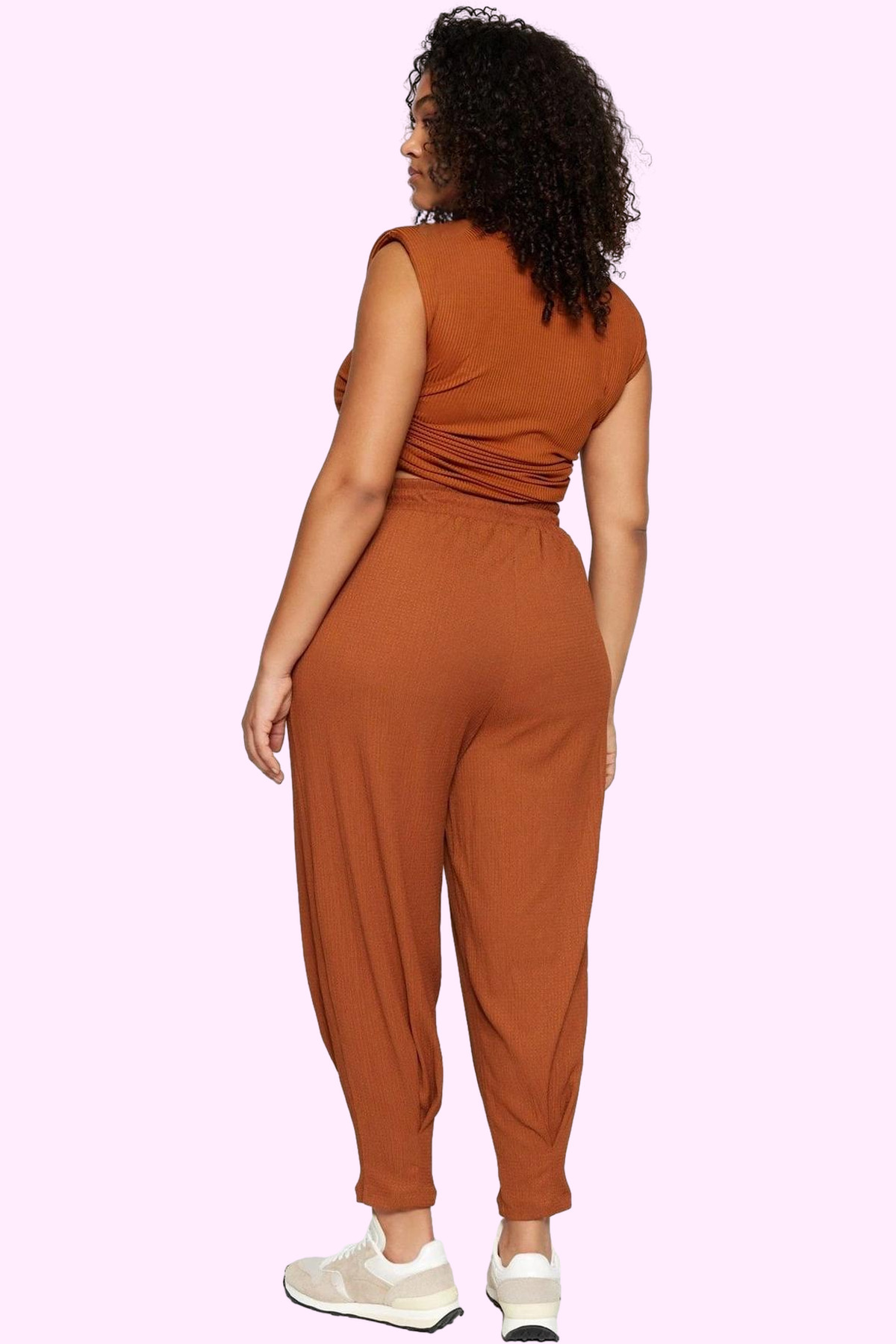 Rahatlığı ve şıklığı bir arada arayan kadınlar için mükemmel bir seçenek olan bu kahverengi büyük beden örme pantolon, benzersiz tasarımıyla dikkat çekiyor. Yüksek bel detaylarıyla vücut hatlarınızı zarifçe vurgulayan pantolon, havuç kalıbıyla rahat bir kullanım sunuyor. Regular boyu ile her mevsim kombinlerinizde yerini alacak olan bu pantolon, düz deseni sayesinde hem günlük hem de özel davetlerinizde şık görünmenizi sağlayacak. Nefes alan ve yumuşak dokusuyla gün boyu konfor hissi yaşatırken, dayanıklı yapısıyla uzun yıllar kullanabileceğiniz bir parça.