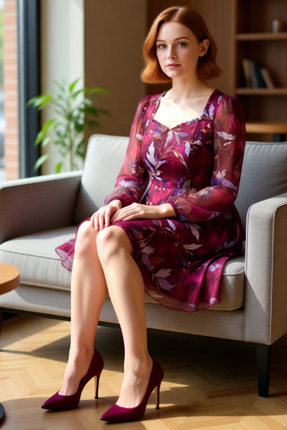 Ürün Özellikleri: A-line kalıp, 100% polyester materyal, geometrik desen, kalp yaka, uzun balon kol, dokuma şifon kumaş, bordo çok renkli.