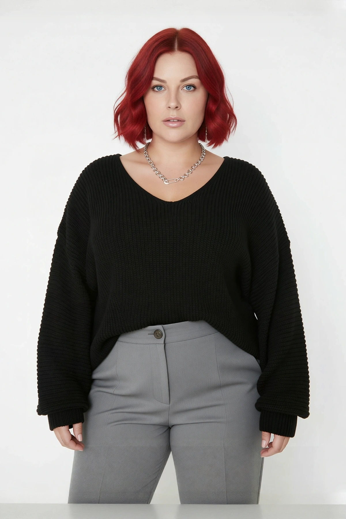 Bu çok yönlü kazak, büyük beden koleksiyonunun sunduğu geniş beden seçenekleriyle her kesime hitap eder. Hafta sonu şıklığınız için kot pantolonlarla, daha resmi casual bir görünüm için kumaş pantolonlarla kombinleyebilirsiniz. Soğuk kış günlerinde işe giderken, arkadaş buluşmalarında veya evde rahatça vakit geçirirken tercih edilebilir. Sonbahar ve ilkbahar mevsimlerinde de serin akşamlarda stil sahibi bir seçenek sunar.