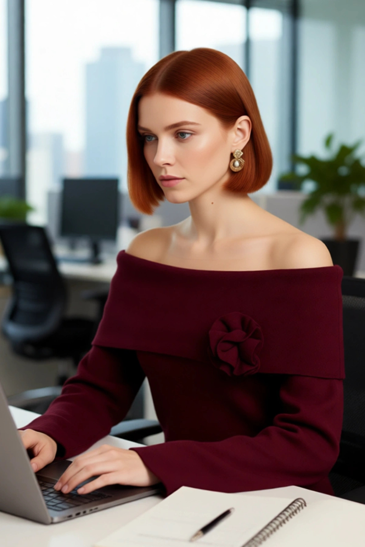 Ürün Özellikleri: Regular kalıp, 100% Akrilik materyal, çiçekli desen, Carmen yaka, çan kol, triko kumaş, bordo renk, basic siluet.