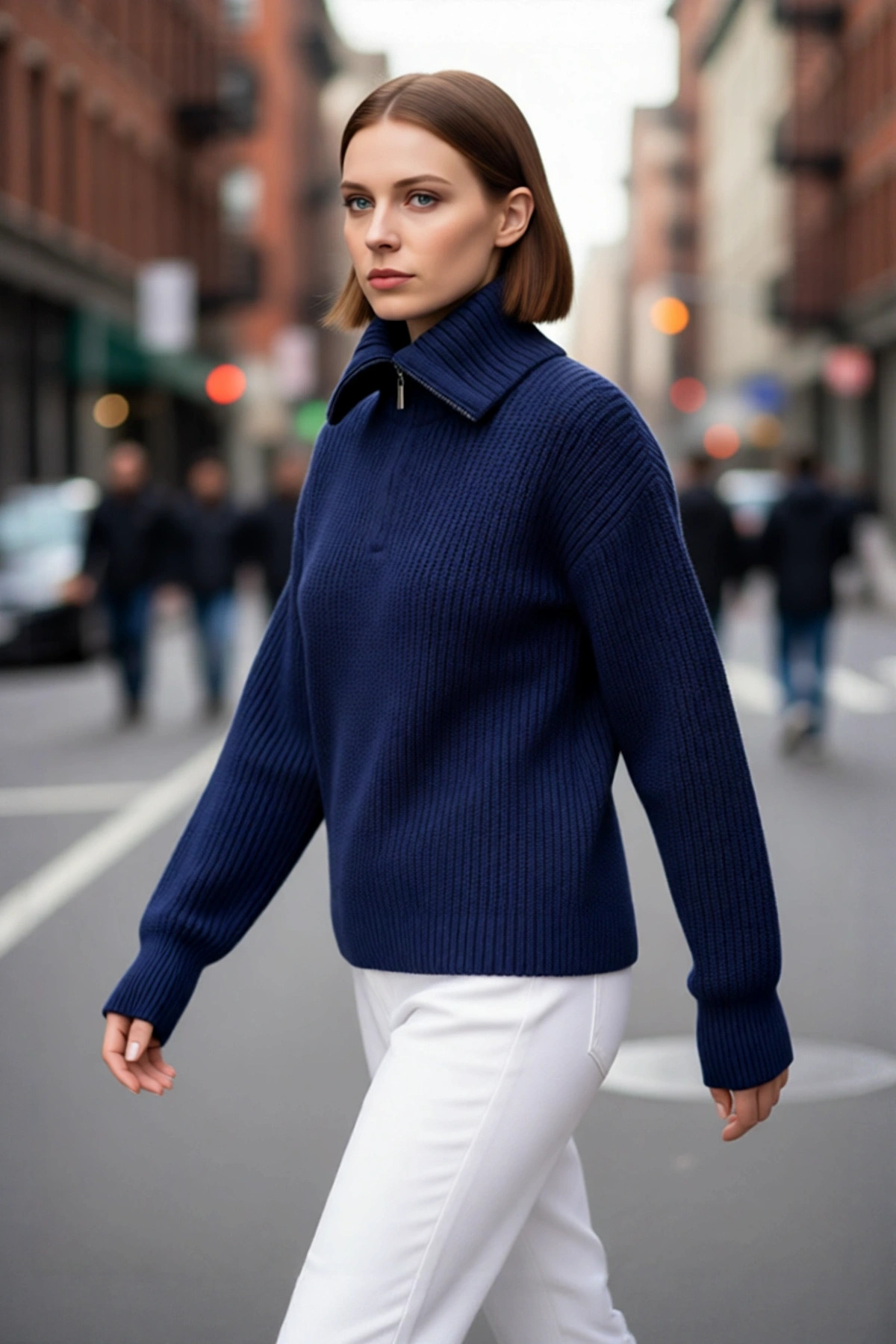 Fermuarlı dik yaka tasarımı, hem estetik hem de fonksiyonel bir özellik sunarak, rüzgarlı havalarda boynunuzu korur ve isteğe bağlı havalandırma imkanı sağlar. Düşük kol tipi ve uzun kol boyu, hareket özgürlüğünü artırırken, rahat ve çağdaş bir siluet yaratır. Selanik dokuma tekniği, kazağın yüzeyine zarif bir doku ve hacim katarken, triko kumaşın esnek ve nefes alabilir yapısı sayesinde gün boyu kendinizi iyi hissetmenizi sağlar. Bu özel materyal bileşimi, kazağın uzun yıllar boyunca ilk günkü formunu ve rengini korumasına yardımcı olur. Ayrıca, kolay bakım özellikleri sayesinde, yoğun yaşam tarzınıza pratik bir çözüm sunar.